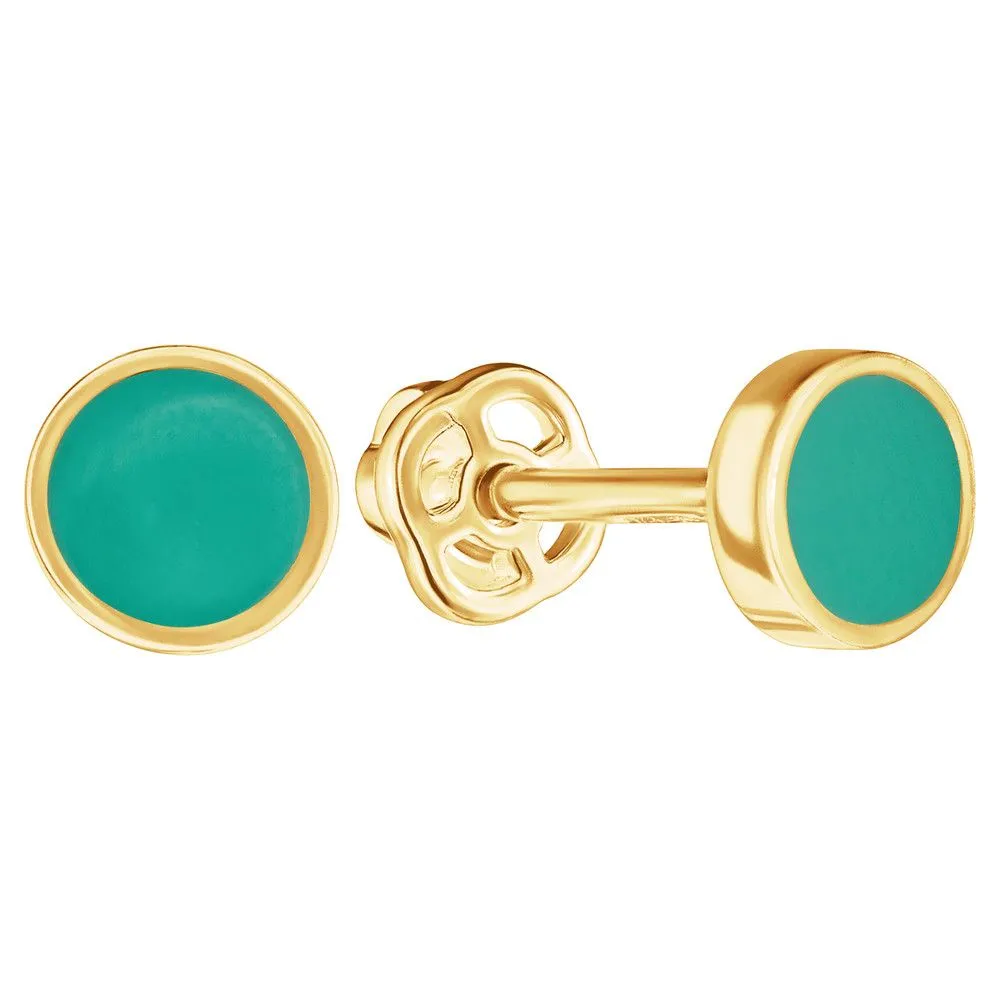 Серебряные серьги гвоздики (пусеты) с эмалью - цвет тиффани / Желтое Золото. Средний вес ювелирного украшения 0.86 гр. Эмаль – холодная двухкомпонентная итальянская эмаль высокого качества. Имеет высокую степень устойчивости к царапинам и солнечному свету, ударам и механическим повреждениям.< /p> Все изделия собственного производства и имеют гарантию 12 месяцев. Арт. 8847YG.