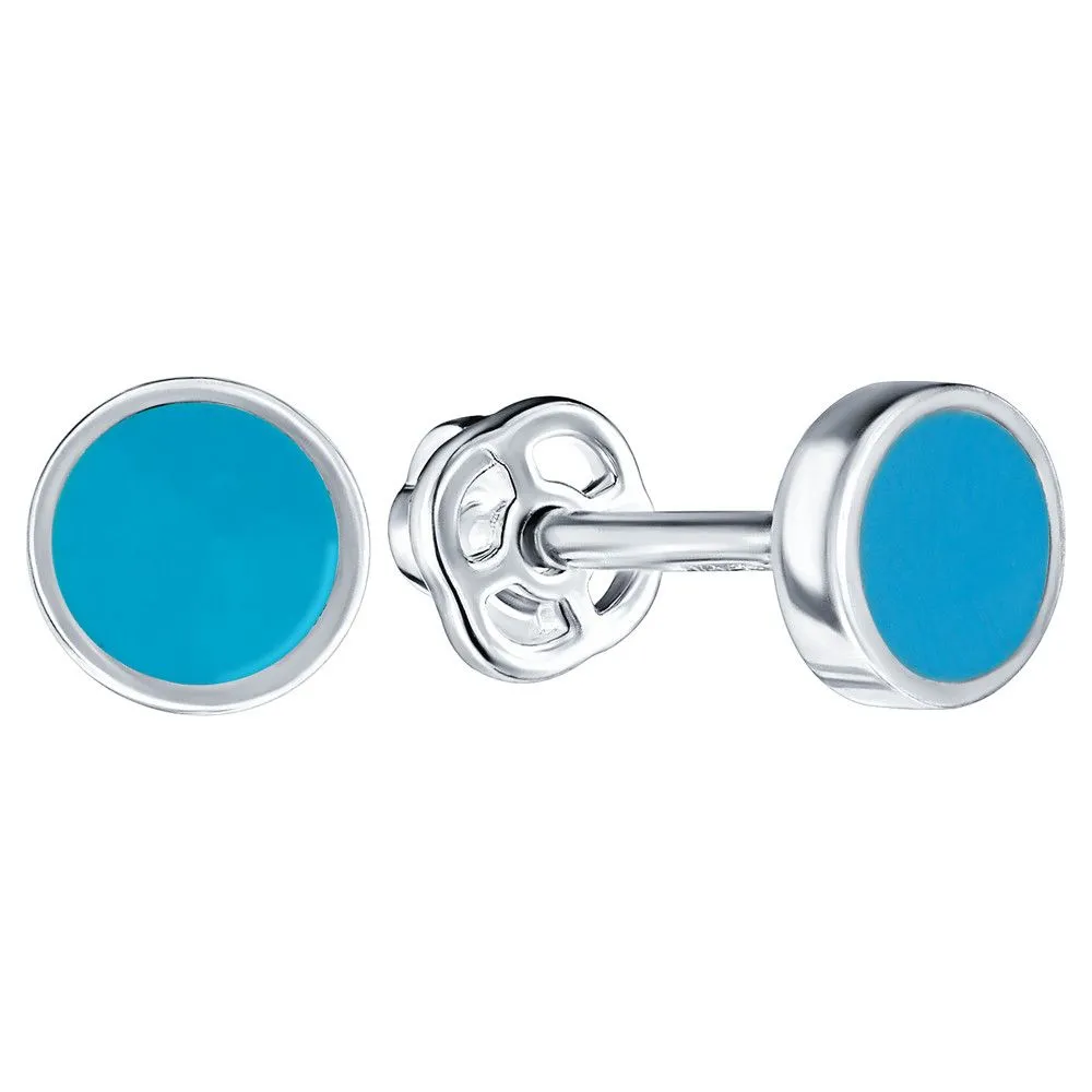 Серебряные серьги гвоздики (пусеты) с эмалью - цвет голубой яркий / Чистое Серебро. Средний вес ювелирного украшения 0.86 гр. Эмаль – холодная двухкомпонентная итальянская эмаль высокого качества. Имеет высокую степень устойчивости к царапинам и солнечному свету, ударам и механическим повреждениям.< /p> Все изделия собственного производства и имеют гарантию 12 месяцев. Арт. 8848AG.