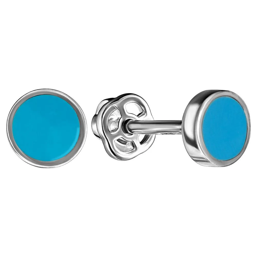 Серебряные серьги гвоздики (пусеты) с эмалью - цвет голубой яркий / Палладий. Средний вес ювелирного украшения 0.86 гр. Эмаль – холодная двухкомпонентная итальянская эмаль высокого качества. Имеет высокую степень устойчивости к царапинам и солнечному свету, ударам и механическим повреждениям.< /p> Все изделия собственного производства и имеют гарантию 12 месяцев. Арт. 8848PD.