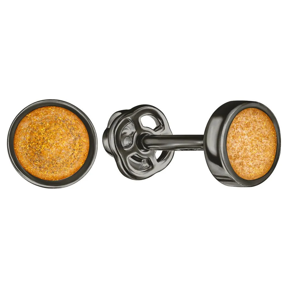 Серебряные серьги гвоздики (пусеты) с эмалью - цвет золото / Черный Родий. Средний вес ювелирного украшения 0.86 гр. Эмаль – холодная двухкомпонентная итальянская эмаль высокого качества. Имеет высокую степень устойчивости к царапинам и солнечному свету, ударам и механическим повреждениям.< /p> Все изделия собственного производства и имеют гарантию 12 месяцев. Арт. 8849BR.
