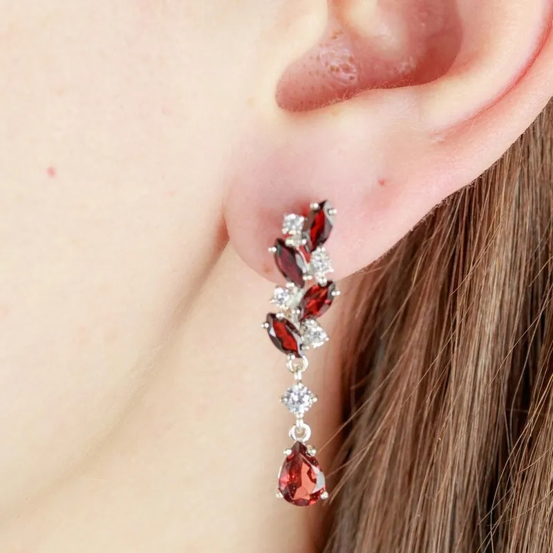 Серебряные серьги с натуральным гранатом - коллекция Росинка. Средний вес изделия с камнями 4.5 гр. Месторождение: Гранат (Кольский п-ов, Россия). Гранат (Натуральный) груша 5*7 мм., средний вес: 0.79 карат. Все изделия собственного производства. Гарантия 12 месяцев.Арт. 8421. Гранат называют камнем любви. Он дарит своим обладательницам мудрость, а владельцам – решительность и храбрость. Данному камню присущи лечебные свойства, давным-давно он использовался при ранениях. Считалось, что он помогает поддерживать связь с миром мертвых.