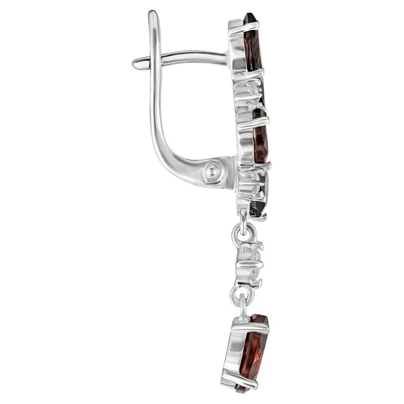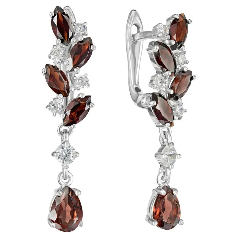 Серебряные серьги с натуральным гранатом - коллекция Росинка / покрытие Белый Родий