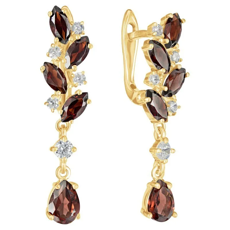 Серебряные серьги с натуральным гранатом - коллекция Росинка. Серебряные серьги 925 пробы с покрытием желтое золото. Цвет покрытия соответствует швейцарскому цветовому стандарту NIHS -FF24ct и цвету чистого золото 999.99. На последней фотографии мы разместили сравнительную фотографию 3 цвета золотого покрытия. Помимо предания золотого цвета Вашему изделию, тонкий слой золота защищает от окисления. Для более стойкого эффекта золочения и долговечности покрытия мы дополнительно наносим подслой палладия (Pd). Средний вес изделия с камнями 4.5 гр. Месторождение: Гранат (Кольский п-ов, Россия). Гранат (Натуральный) груша 5*7 мм., средний вес: 0.79 карат. Все изделия собственного производства. Гарантия 12 месяцев.Арт. 8421. Гранат называют камнем любви. Он дарит своим обладательницам мудрость, а владельцам – решительность и храбрость. Данному камню присущи лечебные свойства, давным-давно он использовался при ранениях. Считалось, что он помогает поддерживать связь с миром мертвых.