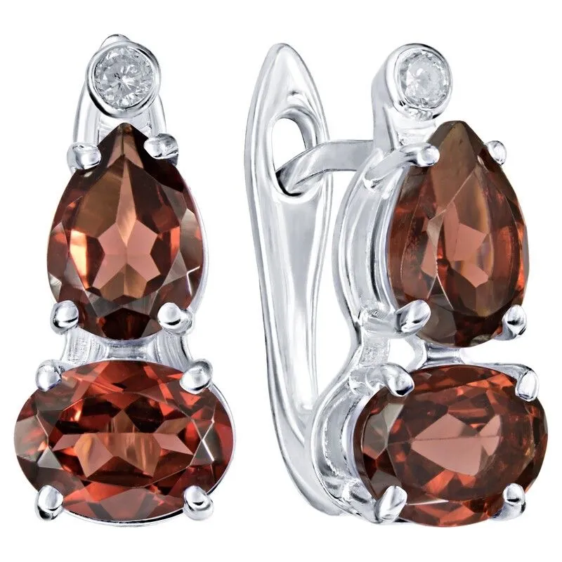 Серебряные серьги с натуральным гранатом - коллекция Сансара / покрытие Чистое Серебро.Средний вес украшения с камнями 3.24 гр.Месторождение(я): Гранат (Кольский п-ов, Россия).Ювелирные вставки:Гранат (Натуральный) овал 5*7 мм., средний вес: 0.95 карат.Гранат (Натуральный) груша 5*7 мм., средний вес: 0.79 карат.Белый Нанокристалл круг 2 мм., средний вес: 0.06 карат.Все изделия собственного производства и имеют гарантию 12 месяцев. Арт. 8697AG . Гранат называют камнем любви. Он дарит своим обладательницам мудрость, а владельцам – решительность и храбрость. Данному камню присущи лечебные свойства, давным-давно он использовался при ранениях. Считалось, что он помогает поддерживать связь с миром мертвых.