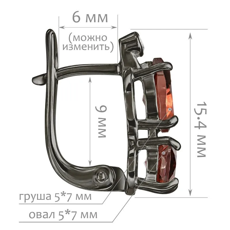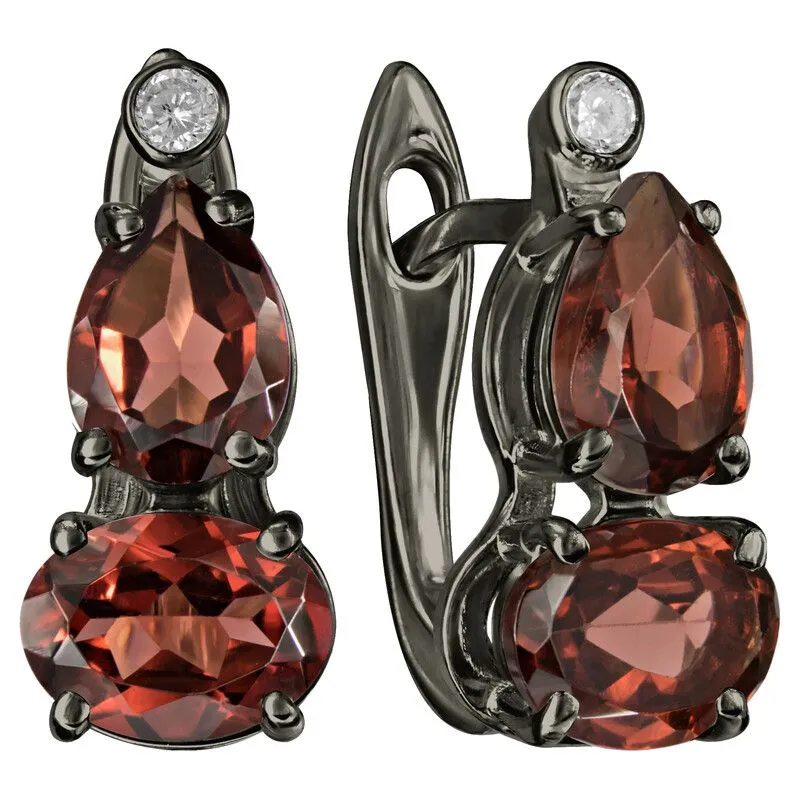 Серебряные серьги с натуральным гранатом - коллекция Сансара / покрытие Черный Родий.Средний вес украшения с камнями 3.32 гр.Месторождение(я): Гранат (Кольский п-ов, Россия).Ювелирные вставки:Гранат (Натуральный) овал 5*7 мм., средний вес: 0.95 карат.Гранат (Натуральный) груша 5*7 мм., средний вес: 0.79 карат.Белый Нанокристалл круг 2 мм., средний вес: 0.06 карат.Все изделия собственного производства и имеют гарантию 12 месяцев. Арт. 8697BR . Гранат называют камнем любви. Он дарит своим обладательницам мудрость, а владельцам – решительность и храбрость. Данному камню присущи лечебные свойства, давным-давно он использовался при ранениях. Считалось, что он помогает поддерживать связь с миром мертвых.