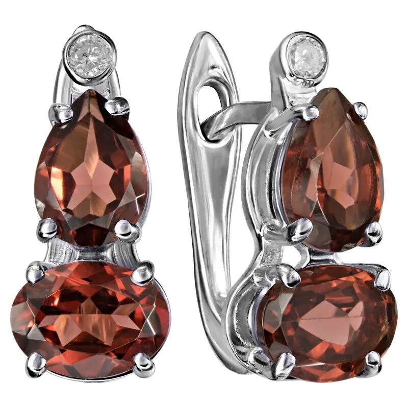 Серебряные серьги с натуральным гранатом - коллекция Сансара / покрытие Палладий.Средний вес украшения с камнями 3.24 гр.Месторождение(я): Гранат (Кольский п-ов, Россия).Ювелирные вставки:Гранат (Натуральный) овал 5*7 мм., средний вес: 0.95 карат.Гранат (Натуральный) груша 5*7 мм., средний вес: 0.79 карат.Белый Нанокристалл круг 2 мм., средний вес: 0.06 карат.Все изделия собственного производства и имеют гарантию 12 месяцев. Арт. 8697PD . Гранат называют камнем любви. Он дарит своим обладательницам мудрость, а владельцам – решительность и храбрость. Данному камню присущи лечебные свойства, давным-давно он использовался при ранениях. Считалось, что он помогает поддерживать связь с миром мертвых.