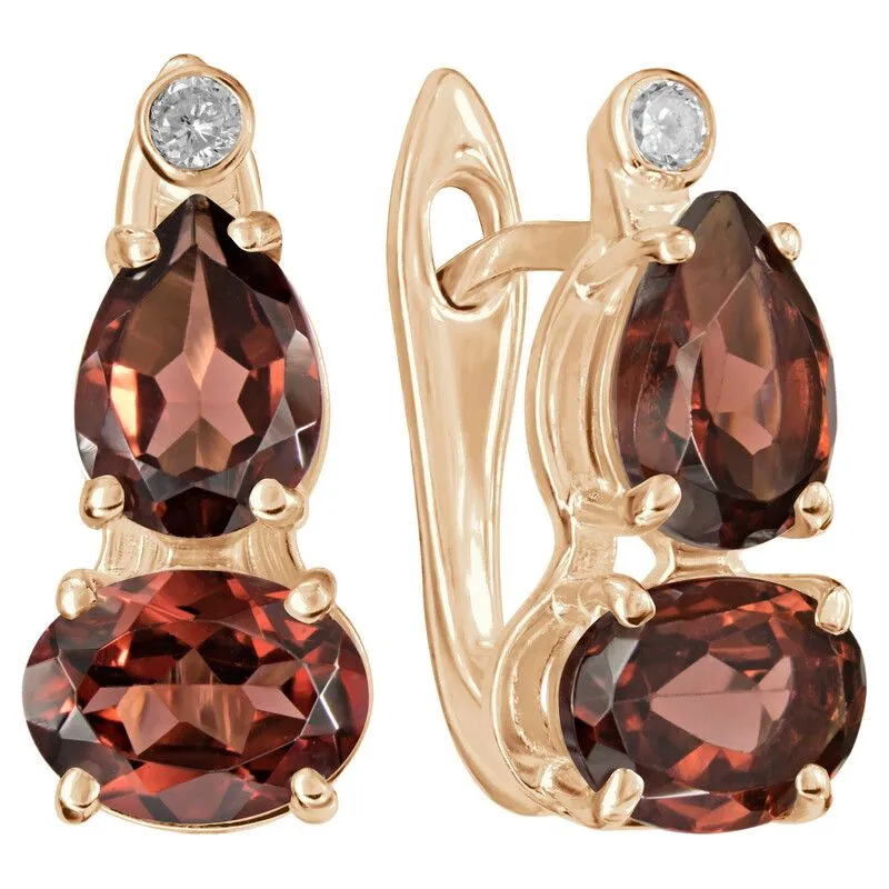 Серебряные серьги с натуральным гранатом - коллекция Сансара / покрытие Розовое Золото.Средний вес украшения с камнями 3.29 гр.Месторождение(я): Гранат (Кольский п-ов, Россия).Ювелирные вставки:Гранат (Натуральный) овал 5*7 мм., средний вес: 0.95 карат.Гранат (Натуральный) груша 5*7 мм., средний вес: 0.79 карат.Белый Нанокристалл круг 2 мм., средний вес: 0.06 карат.Все изделия собственного производства и имеют гарантию 12 месяцев. Арт. 8697PG . Гранат называют камнем любви. Он дарит своим обладательницам мудрость, а владельцам – решительность и храбрость. Данному камню присущи лечебные свойства, давным-давно он использовался при ранениях. Считалось, что он помогает поддерживать связь с миром мертвых.
