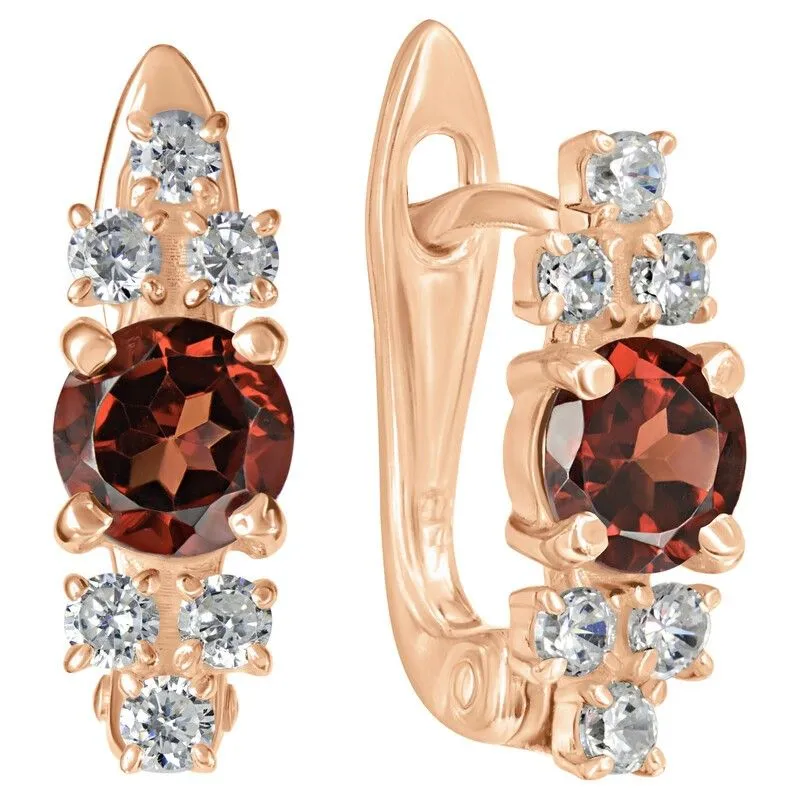 Серебряные серьги с натуральным гранатом - коллекция Нова / покрытие Красное Золото.Средний вес украшения с камнями 2.56 гр.Месторождение(я): Гранат (Кольский п-ов, Россия).Ювелирные вставки:Гранат (Натуральный) круг 5 мм., средний вес: 0.65 карат.Белый Нанокристалл круг 2 мм., средний вес: 0.06 карат.Все изделия собственного производства и имеют гарантию 12 месяцев. Арт. 8711RG . Гранат называют камнем любви. Он дарит своим обладательницам мудрость, а владельцам – решительность и храбрость. Данному камню присущи лечебные свойства, давным-давно он использовался при ранениях. Считалось, что он помогает поддерживать связь с миром мертвых.