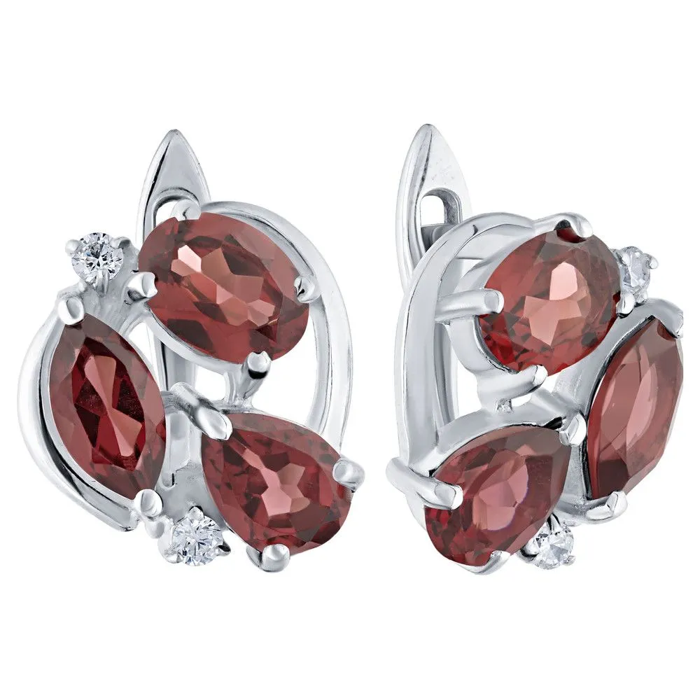 Серебряные серьги с натуральным гранатом - коллекция Фортуна / Без покрытия. Средний вес украшения с камнями 5.68 гр. Месторождение: Гранат (Кольский п-ов, Россия) Ювелирные вставки: Гранат (Натуральный) груша 5*7 мм., средний вес: 0.79 карат. Гранат (Натуральный) овал 5*7 мм., средний вес: 0.95 карат. (Натуральный) круг 2 мм., средний вес: 0.06 карат. Все изделия собственного производства и имеют гарантию 12 месяцев. Арт. 8776NP . Гранат называют камнем любви. Он дарит своим обладательницам мудрость, а владельцам – решительность и храбрость. Данному камню присущи лечебные свойства, давным-давно он использовался при ранениях. Считалось, что он помогает поддерживать связь с миром мертвых.