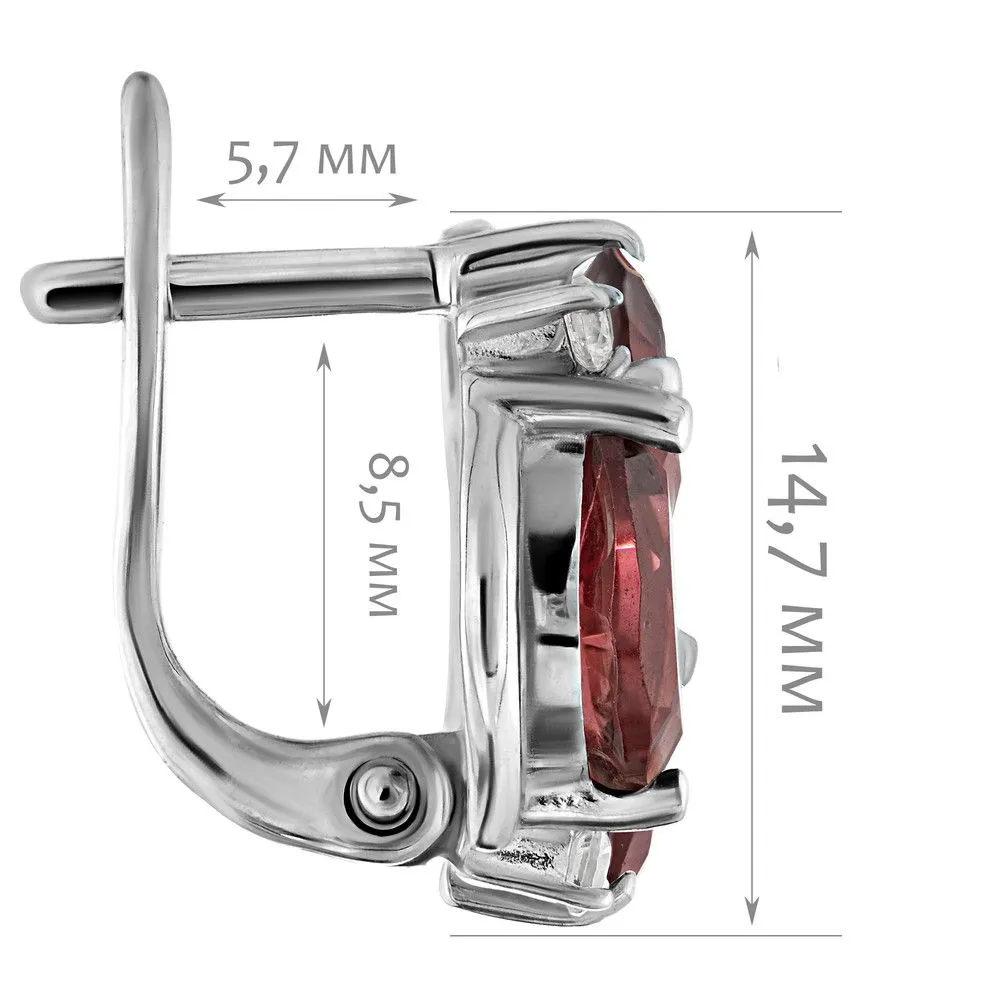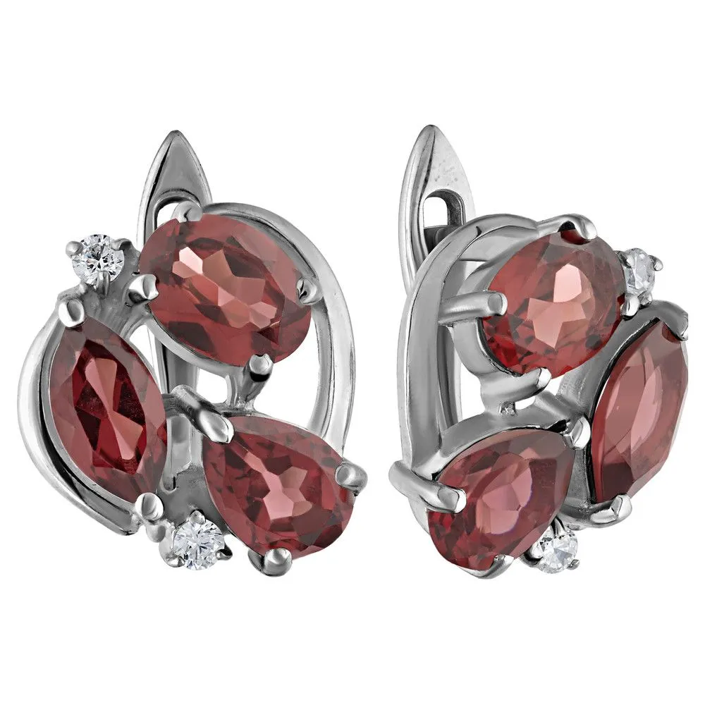 Серебряные серьги с натуральным гранатом - коллекция Фортуна / покрытие Палладий. Средний вес украшения с камнями 5.75 гр. Месторождение: Гранат (Кольский п-ов, Россия) Ювелирные вставки: Гранат (Натуральный) груша 5*7 мм., средний вес: 0.79 карат. Гранат (Натуральный) овал 5*7 мм., средний вес: 0.95 карат. (Натуральный) круг 2 мм., средний вес: 0.06 карат. Все изделия собственного производства и имеют гарантию 12 месяцев. Арт. 8776PD . Гранат называют камнем любви. Он дарит своим обладательницам мудрость, а владельцам – решительность и храбрость. Данному камню присущи лечебные свойства, давным-давно он использовался при ранениях. Считалось, что он помогает поддерживать связь с миром мертвых.