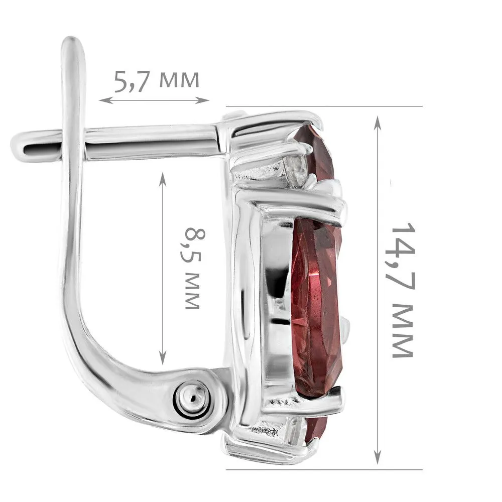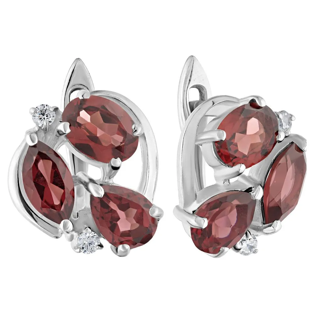 Серебряные серьги с натуральным гранатом - коллекция Фортуна / покрытие Белый Родий. Средний вес украшения с камнями 5.68 гр. Месторождение: Гранат (Кольский п-ов, Россия) Ювелирные вставки: Гранат (Натуральный) груша 5*7 мм., средний вес: 0.79 карат. Гранат (Натуральный) овал 5*7 мм., средний вес: 0.95 карат. (Натуральный) круг 2 мм., средний вес: 0.06 карат. Все изделия собственного производства и имеют гарантию 12 месяцев. Арт. 8776WR . Гранат называют камнем любви. Он дарит своим обладательницам мудрость, а владельцам – решительность и храбрость. Данному камню присущи лечебные свойства, давным-давно он использовался при ранениях. Считалось, что он помогает поддерживать связь с миром мертвых.
