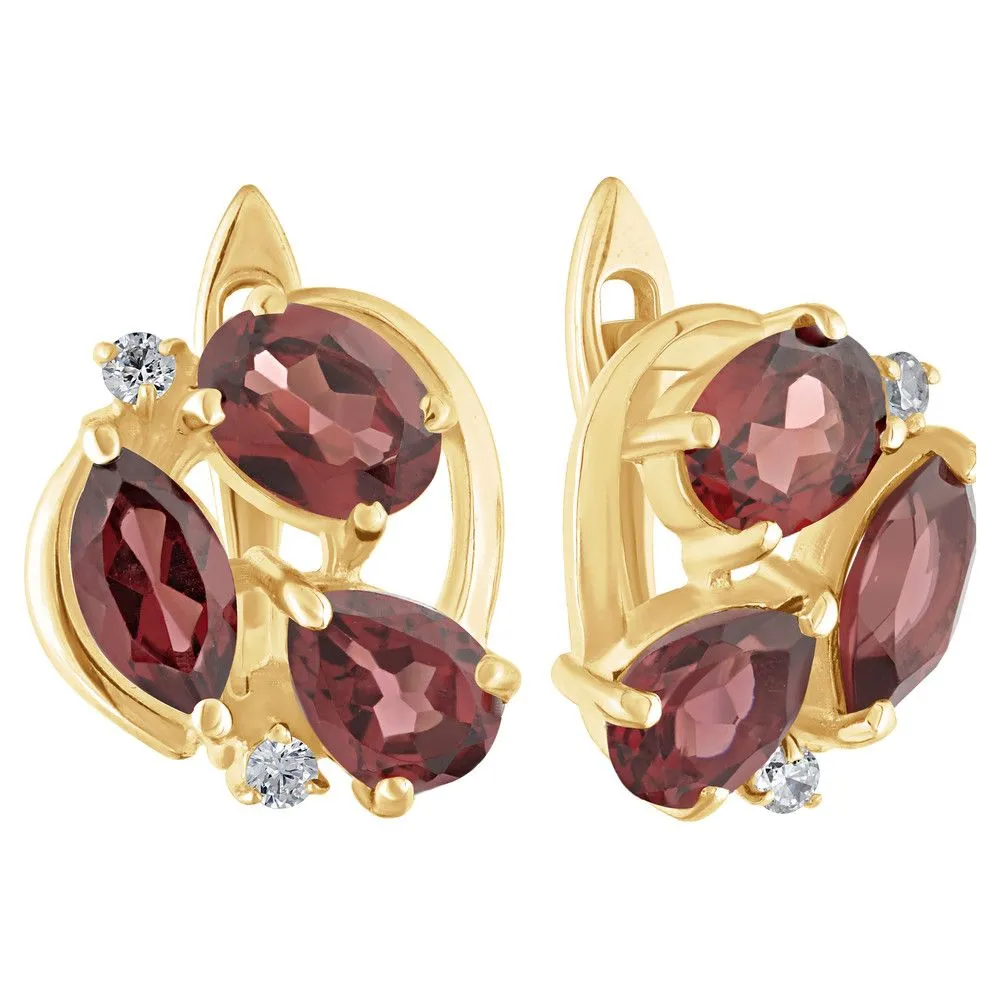 Серебряные серьги с натуральным гранатом - коллекция Фортуна / покрытие Желтое Золото. Средний вес украшения с камнями 5.75 гр. Месторождение: Гранат (Кольский п-ов, Россия) Ювелирные вставки: Гранат (Натуральный) груша 5*7 мм., средний вес: 0.79 карат. Гранат (Натуральный) овал 5*7 мм., средний вес: 0.95 карат. (Натуральный) круг 2 мм., средний вес: 0.06 карат. Все изделия собственного производства и имеют гарантию 12 месяцев. Арт. 8776YG . Гранат называют камнем любви. Он дарит своим обладательницам мудрость, а владельцам – решительность и храбрость. Данному камню присущи лечебные свойства, давным-давно он использовался при ранениях. Считалось, что он помогает поддерживать связь с миром мертвых.