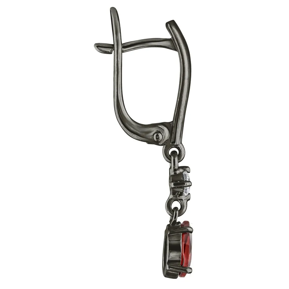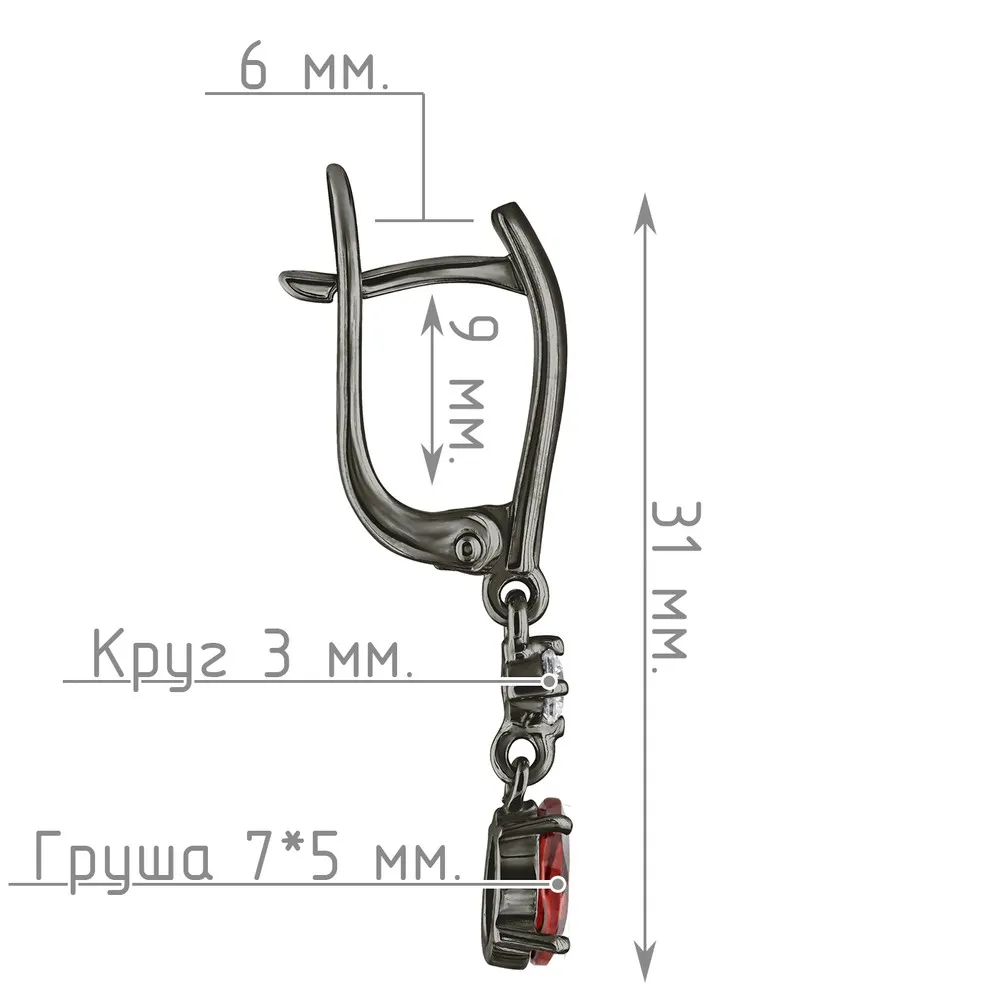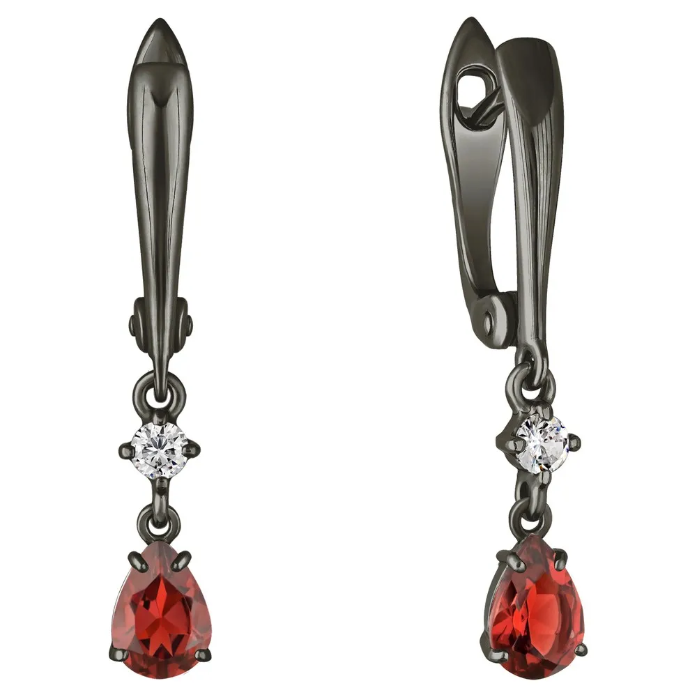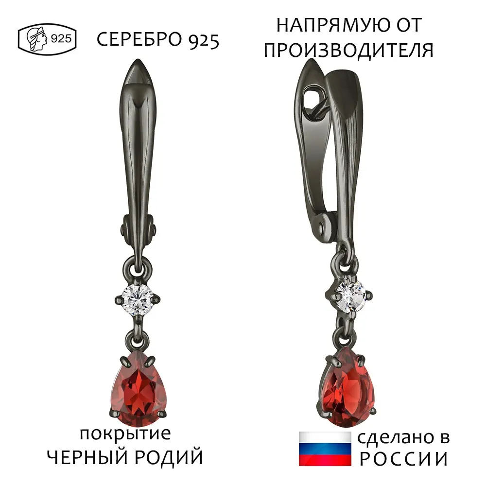 Серебряные серьги с натуральным гранатом - коллекция Алсу (малая) / Черный Родий.