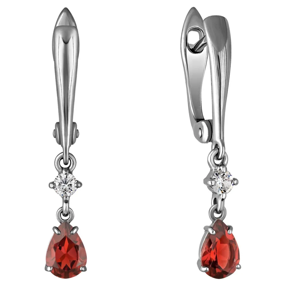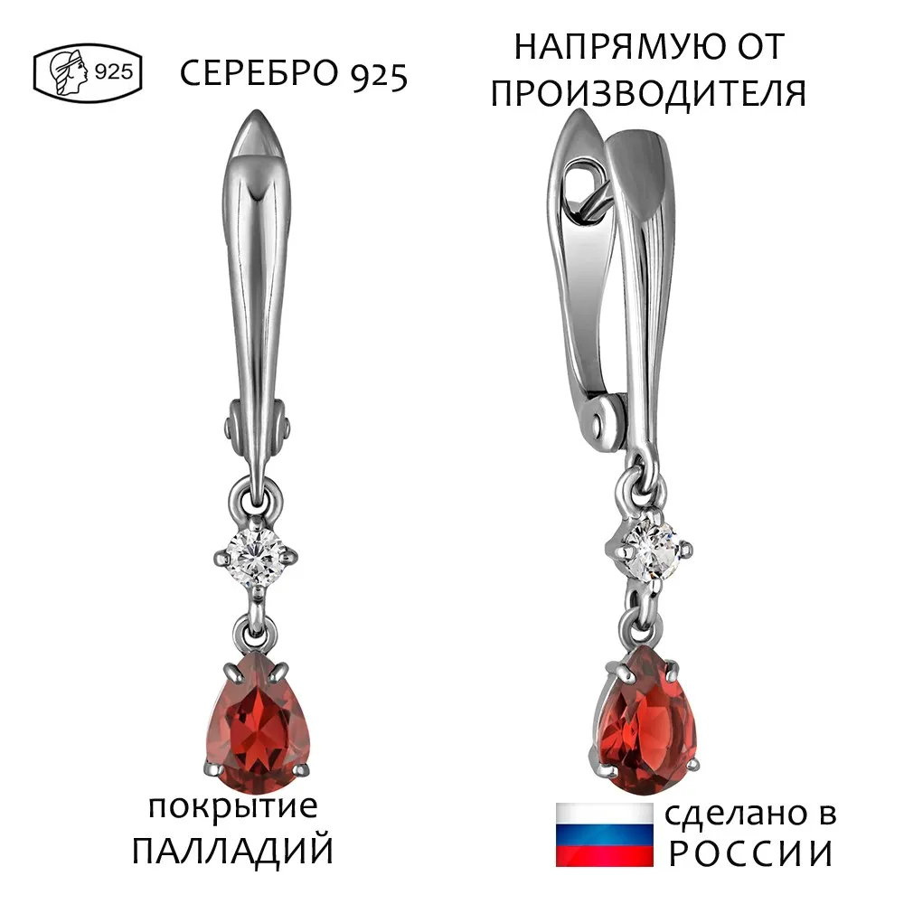 Серебряные серьги с натуральным гранатом - коллекция Алсу (малая) / Палладий.