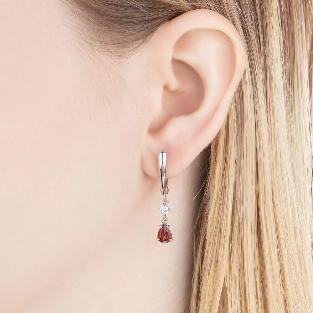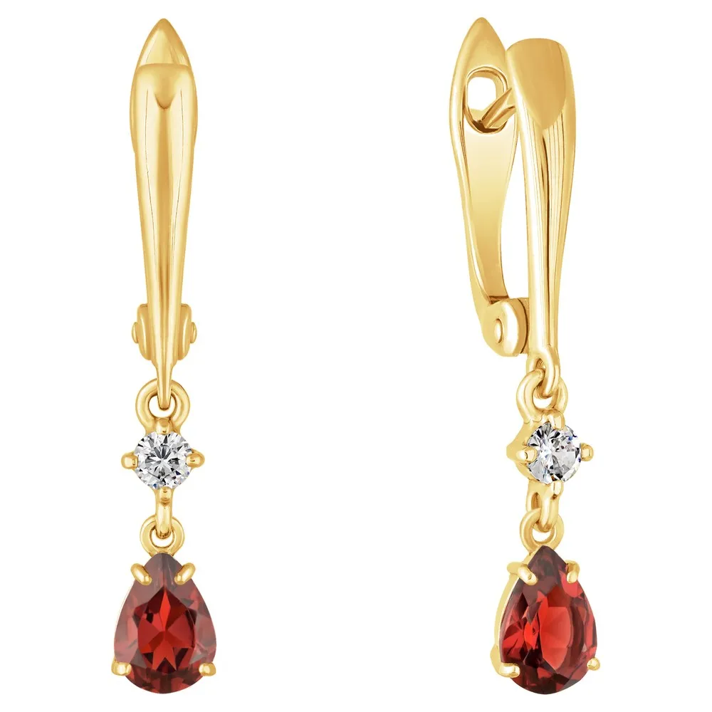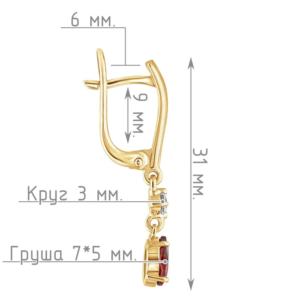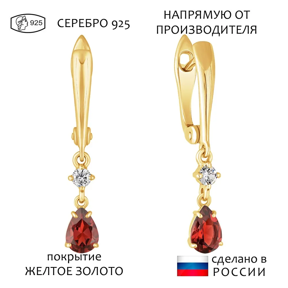 Серебряные серьги с натуральным гранатом - коллекция Алсу (малая) / Желтое Золото.