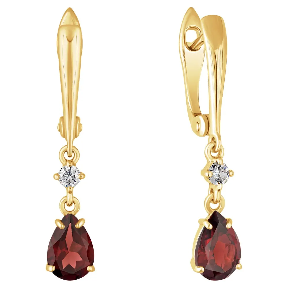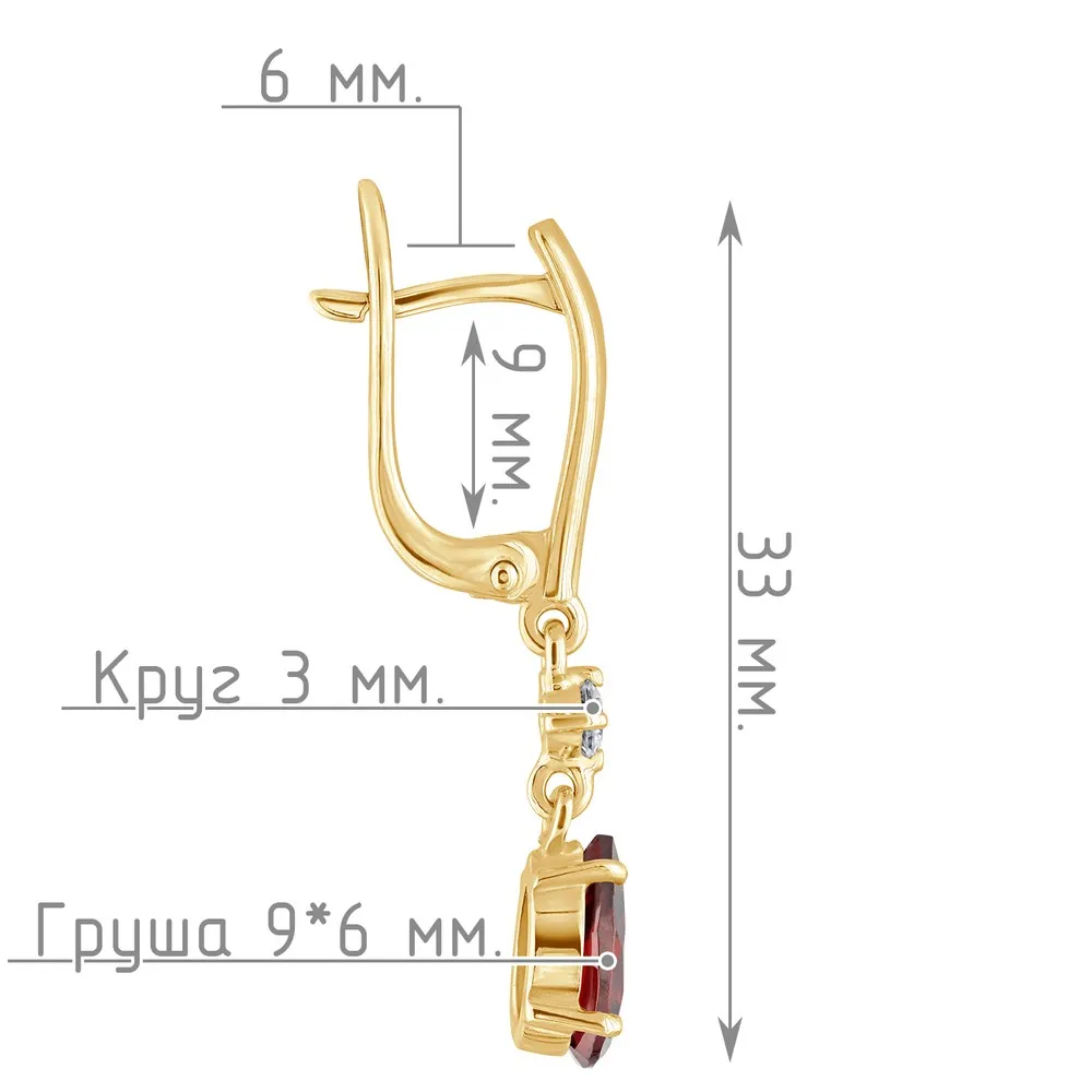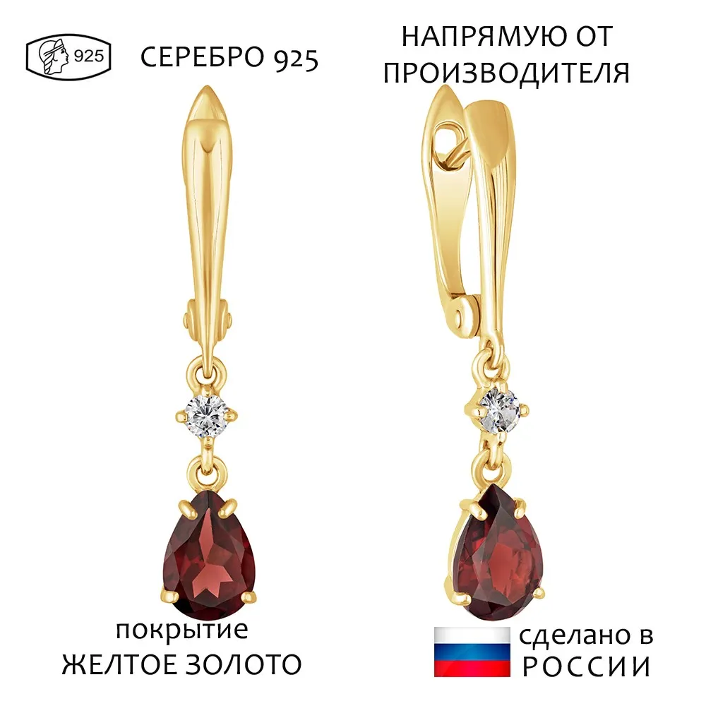 Серебряные серьги с натуральным гранатом - коллекция Алсу (большая) / Желтое Золото.