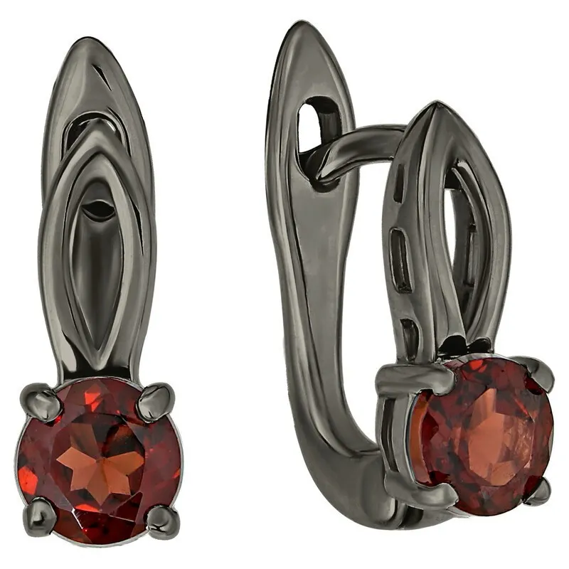Серебряные серьги с натуральным гранатом - коллекция Мона, покрытие Черный Родий. Средний вес украшения с камнем составляет 2.57 гр. Месторождение(я): Гранат (Кольский п-ов, Россия).