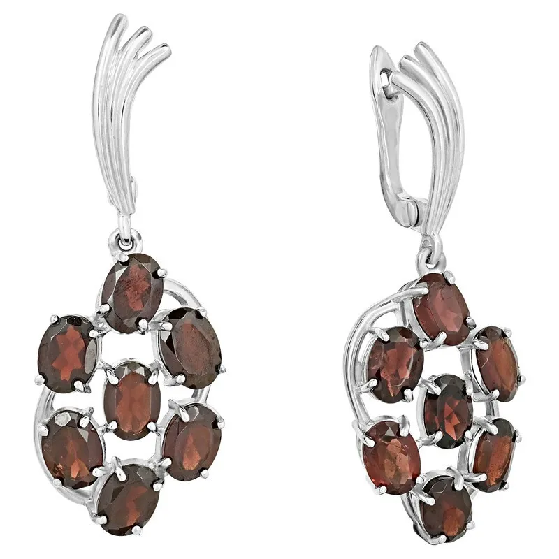 Серебряные серьги с натуральным гранатом - коллекция Аэлита. Средний вес изделия с камнями 9.79 гр. Месторождение: Гранат (Кольский п-ов, Россия). Гранат (Натуральный) овал 5*7 мм., средний вес: 1.06 карат. Все изделия собственного производства. Гарантия 12 месяцев.Арт. 7827. Гранат называют камнем любви. Он дарит своим обладательницам мудрость, а владельцам – решительность и храбрость. Данному камню присущи лечебные свойства, давным-давно он использовался при ранениях. Считалось, что он помогает поддерживать связь с миром мертвых.