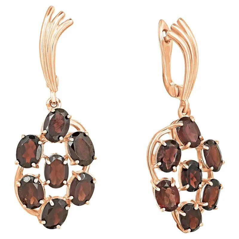 Серебряные серьги с натуральным гранатом - коллекция Аэлита. Серебряные серьги 925 пробы с покрытием розовое золото. Цвет покрытия соответствует швейцарскому цветовому стандарту NIHS -4N и цвету розового золота 585 в России. На последней фотографии мы разместили сравнительную фотографию 3 цвета золотого покрытия. Помимо предания золотого цвета Вашему изделию, тонкий слой золота защищает от окисления. Для более стойкого эффекта золочения и долговечности покрытия мы дополнительно наносим подслой палладия (Pd). Средний вес изделия с камнями 9.79 гр. Месторождение: Гранат (Кольский п-ов, Россия). Гранат (Натуральный) овал 5*7 мм., средний вес: 1.06 карат. Все изделия собственного производства. Гарантия 12 месяцев.Арт. 7827. Гранат называют камнем любви. Он дарит своим обладательницам мудрость, а владельцам – решительность и храбрость. Данному камню присущи лечебные свойства, давным-давно он использовался при ранениях. Считалось, что он помогает поддерживать связь с миром мертвых.