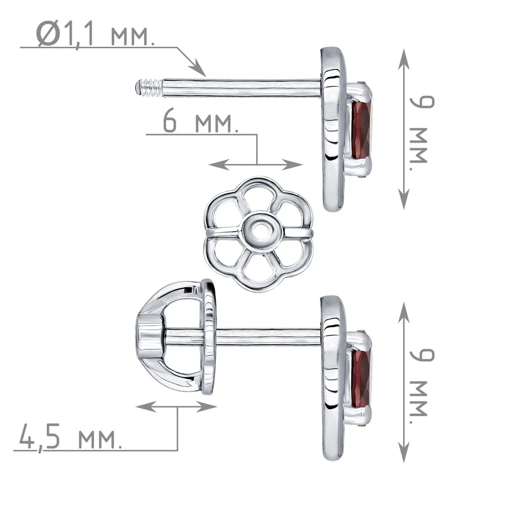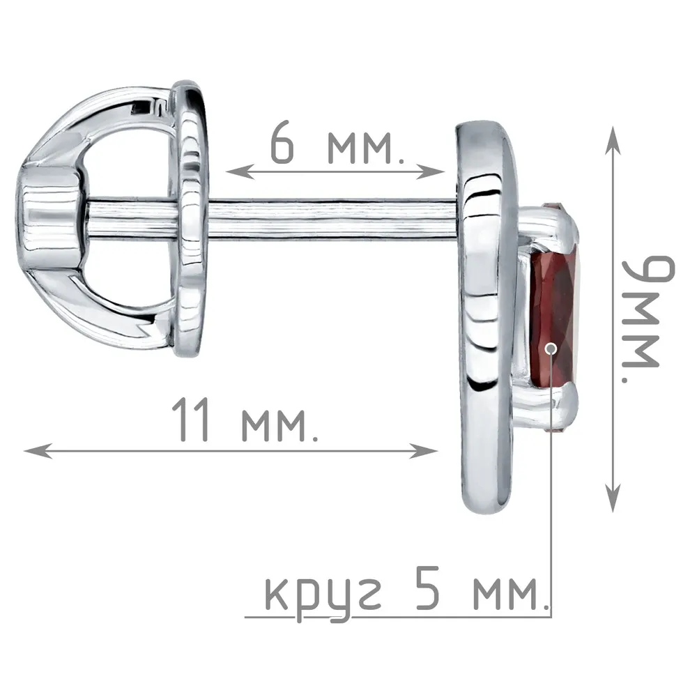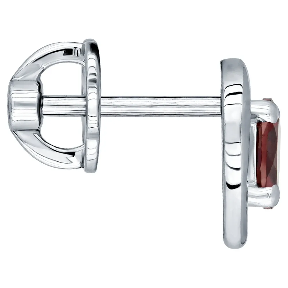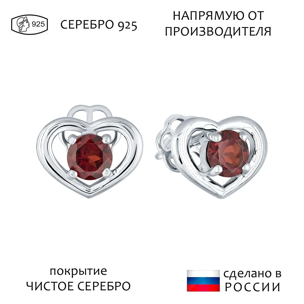 Серебряные серьги гвоздики (пусеты) с натуральным гранатом - Сердце / покрытие Чистое Серебро.