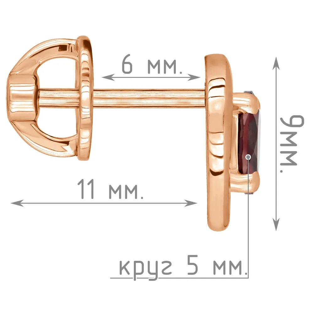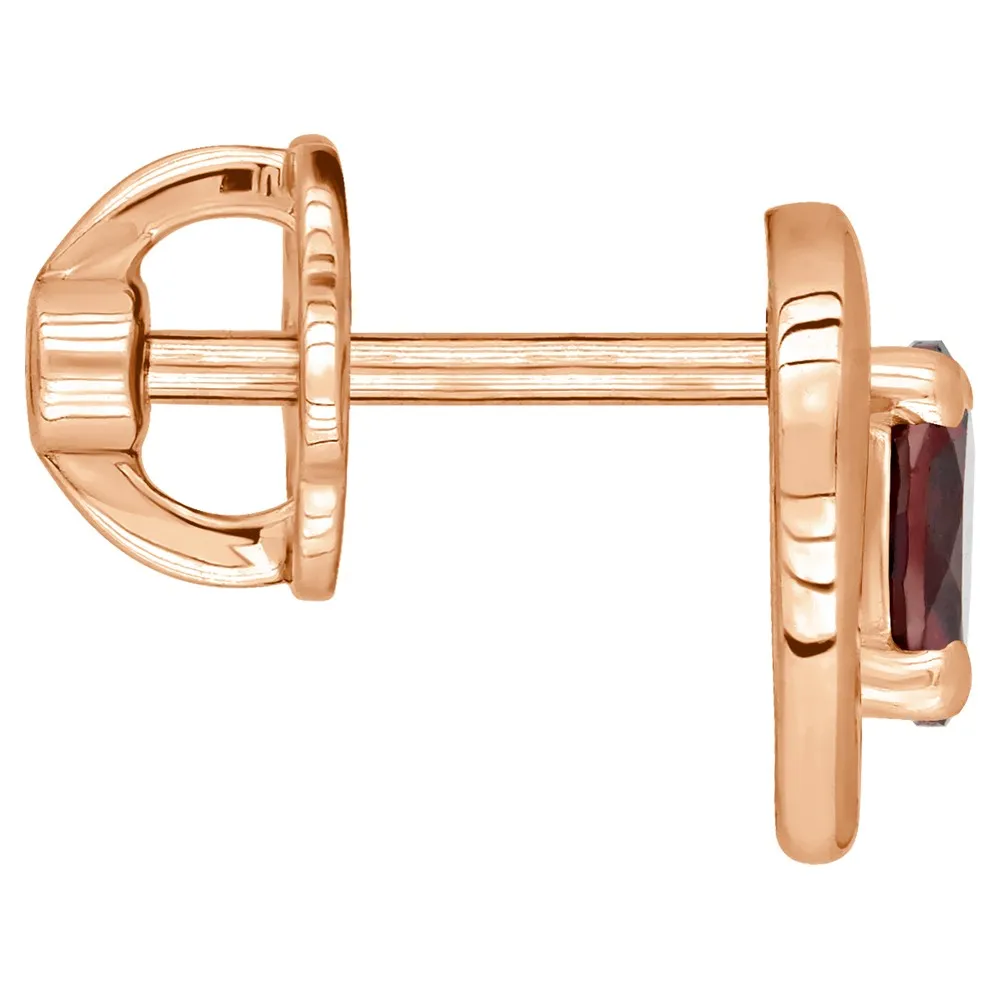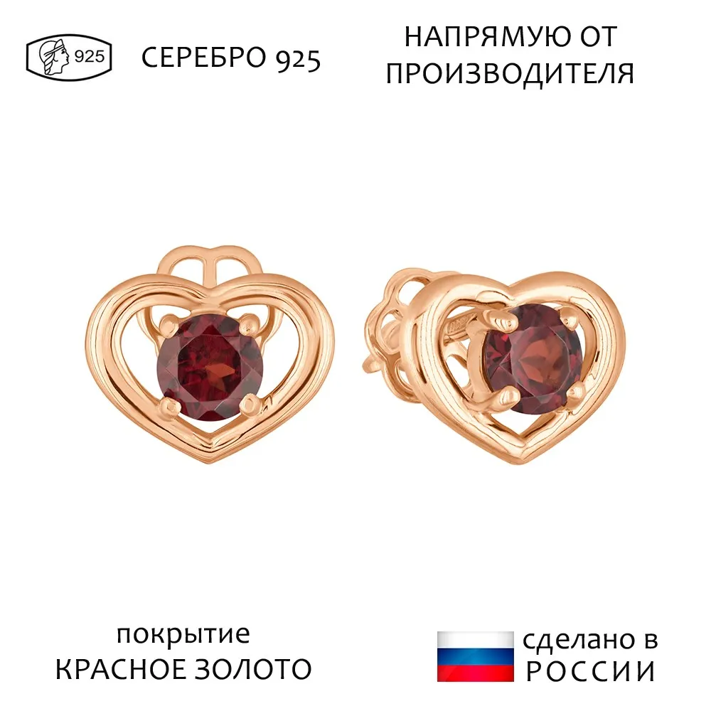 Серебряные серьги гвоздики (пусеты) с натуральным гранатом - Сердце / покрытие Красное золото.
