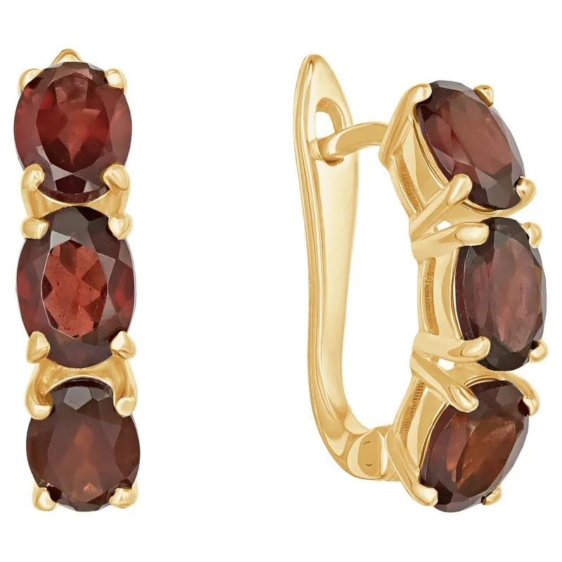 Серебряные серьги с натуральным гранатом - коллекция Муза. Серебряные серьги 925 пробы с покрытием желтое золото. Цвет покрытия соответствует швейцарскому цветовому стандарту NIHS -FF24ct и цвету чистого золото 999.99. На последней фотографии мы разместили сравнительную фотографию 3 цвета золотого покрытия. Помимо предания золотого цвета Вашему изделию, тонкий слой золота защищает от окисления. Для более стойкого эффекта золочения и долговечности покрытия мы дополнительно наносим подслой палладия (Pd). Средний вес изделия с камнями 2.41 гр. Месторождение(я): гранат (Кольский п-ов, Россия) гранат (Натуральный) овал 5*7 мм., средний вес: 1,06 карат. Размер лицевой части: 5*21 мм. Все изделия собственного производства. Гарантия 12 месяцев.Арт. 7918