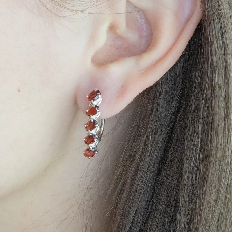 Серебряные серьги с натуральным гранатом - коллекция Колосок / Без покрытия