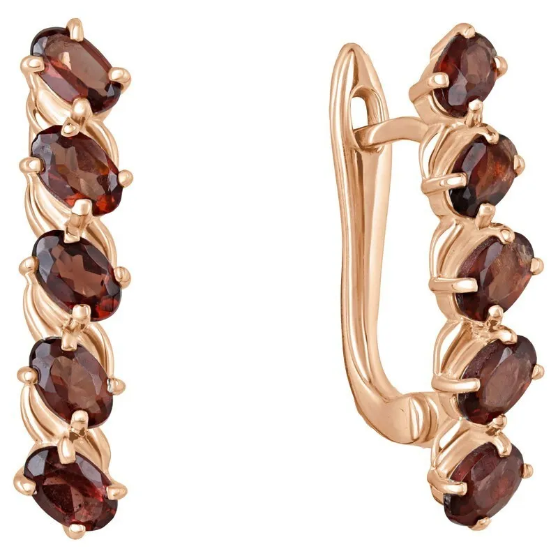 Серебряные серьги с натуральным гранатом - коллекция Колосок. Серебряные серьги 925 пробы с покрытием красное золото. Цвет покрытия соответствует швейцарскому цветовому стандарту NIHS -5N и цвету красного золота 585 в России. На последней фотографии мы разместили сравнительную фотографию 3 цвета золотого покрытия. Помимо предания золотого цвета Вашему изделию, тонкий слой золота защищает от окисления. Для более стойкого эффекта золочения и долговечности покрытия мы дополнительно наносим подслой палладия (Pd). Средний вес изделия с камнями 4.26 гр. Месторождение: Гранат (Кольский п-ов, Россия). Гранат (Натуральный) овал 3*5 мм., средний вес: 0.22 карат. Все изделия собственного производства. Арт. 7976. Гранат называют камнем любви. Он дарит своим обладательницам мудрость, а владельцам – решительность и храбрость. Данному камню присущи лечебные свойства, давным-давно он использовался при ранениях. Считалось, что он помогает поддерживать связь с миром мертвых.