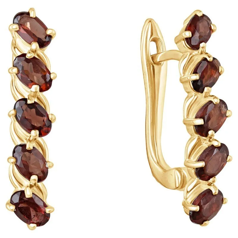 Серебряные серьги с натуральным гранатом - коллекция Колосок. Серебряные серьги 925 пробы с покрытием желтое золото. Цвет покрытия соответствует швейцарскому цветовому стандарту NIHS -FF24ct и цвету чистого золото 999.99. На последней фотографии мы разместили сравнительную фотографию 3 цвета золотого покрытия. Помимо предания золотого цвета Вашему изделию, тонкий слой золота защищает от окисления. Для более стойкого эффекта золочения и долговечности покрытия мы дополнительно наносим подслой палладия (Pd). Средний вес изделия с камнями 4.26 гр. Месторождение: Гранат (Кольский п-ов, Россия). Гранат (Натуральный) овал 3*5 мм., средний вес: 0.22 карат. Все изделия собственного производства. Арт. 7976. Гранат называют камнем любви. Он дарит своим обладательницам мудрость, а владельцам – решительность и храбрость. Данному камню присущи лечебные свойства, давным-давно он использовался при ранениях. Считалось, что он помогает поддерживать связь с миром мертвых.
