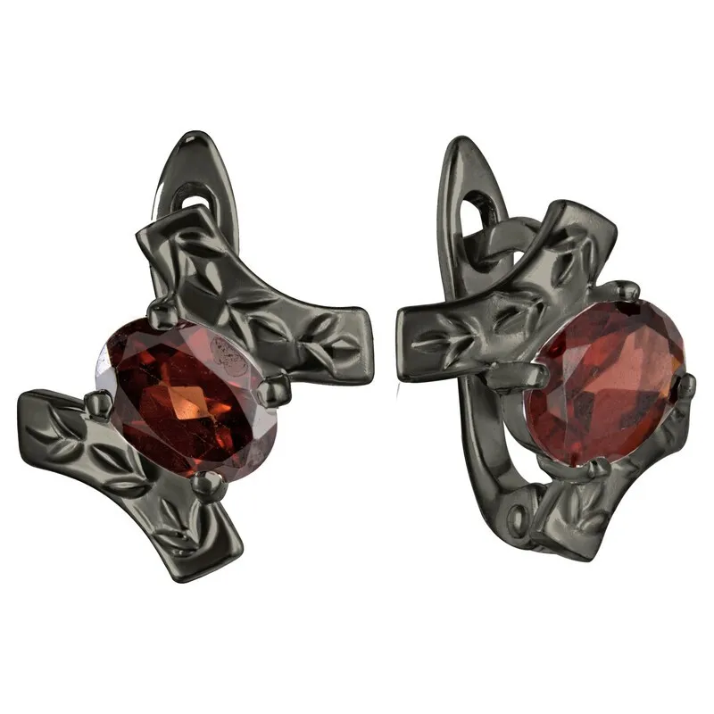 Серебряные серьги с натуральным гранатом - коллекция Тея, покрытие Черный Родий.