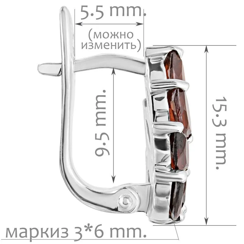 Серебряные серьги с натуральным гранатом - коллекция Искра / покрытие Белый Родий