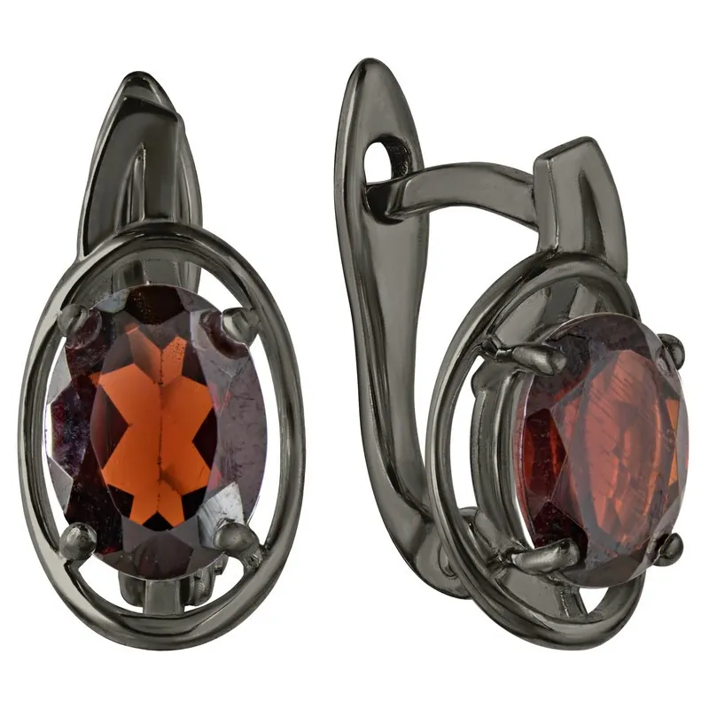 Серебряные серьги с натуральным гранатом - коллекция Фрейя, покрытие Черный Родий.