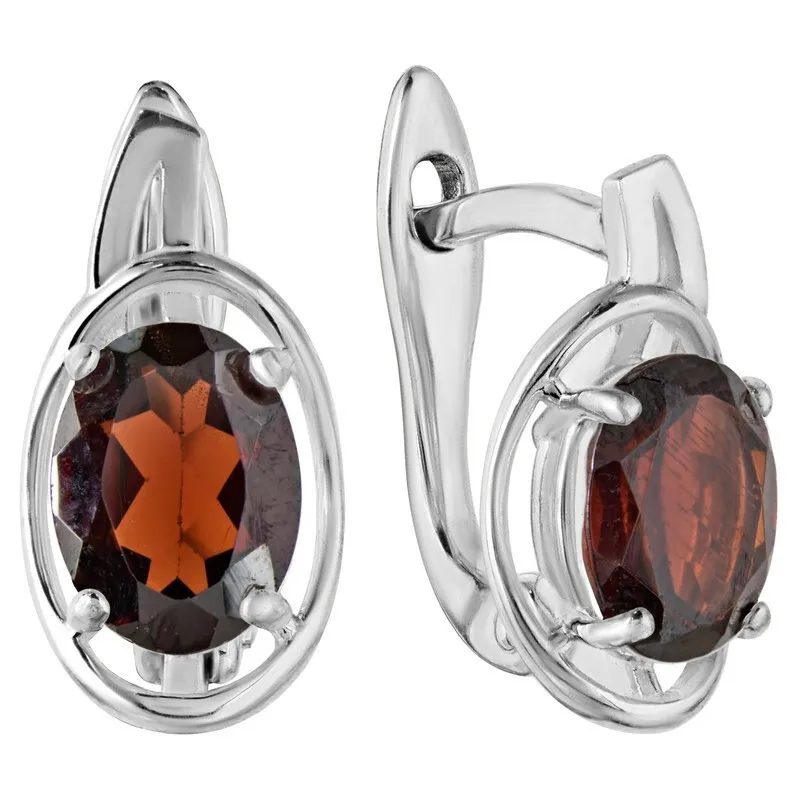 Серебряные серьги с натуральным гранатом - коллекция Фрейя / покрытие Белый Родий