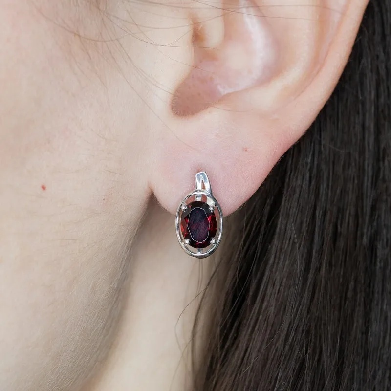 Серебряные серьги с натуральным гранатом - коллекция Фрейя. Средний вес изделия с камнями 2.88 гр. Месторождение: Гранат (Кольский п-ов, Россия) Гранат (Натуральный) овал 6*8 мм., средний вес: 1.43 карат. Все изделия собственного производства. Гарантия 12 месяцев.Арт. 8149. Гранат называют камнем любви. Он дарит своим обладательницам мудрость, а владельцам – решительность и храбрость. Данному камню присущи лечебные свойства, давным-давно он использовался при ранениях. Считалось, что он помогает поддерживать связь с миром мертвых.