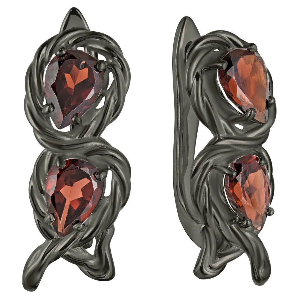 Серебряные серьги с натуральным гранатом - коллекция Ривьера, покрытие Черный Родий.