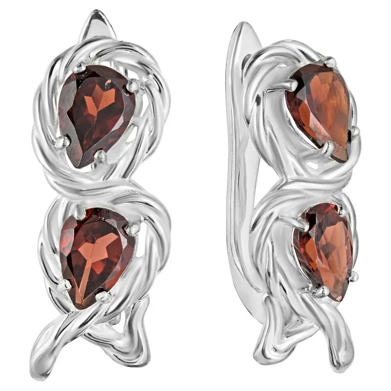 Серебряные серьги с натуральным гранатом - коллекция Ривьера / Без покрытия