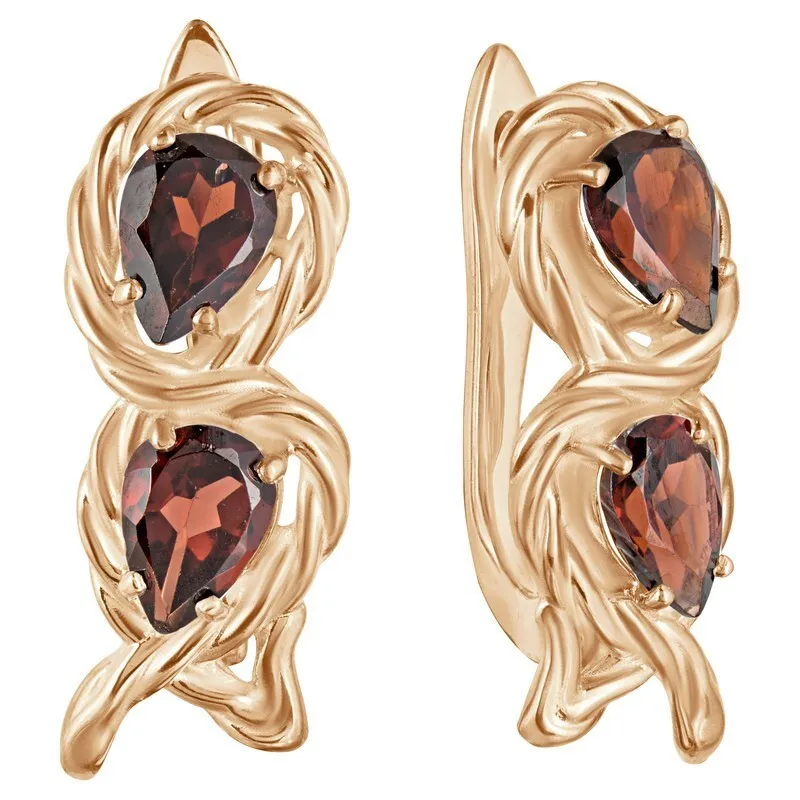 Серебряные серьги с натуральным гранатом - коллекция Ривьера. Серебряные серьги 925 пробы с покрытием розовое золото. Цвет покрытия соответствует швейцарскому цветовому стандарту NIHS -4N и цвету розового золота 585 в России. На последней фотографии мы разместили сравнительную фотографию 3 цвета золотого покрытия. Помимо предания золотого цвета Вашему изделию, тонкий слой золота защищает от окисления. Для более стойкого эффекта золочения и долговечности покрытия мы дополнительно наносим подслой палладия (Pd). Средний вес изделия с камнями 4.71 гр. Месторождение: Гранат (Кольский п-ов, Россия) Гранат (Натуральный) груша 5*7 мм., средний вес: 0.79 карат. Все изделия собственного производства. Гарантия 12 месяцев.Арт. 8158. Гранат называют камнем любви. Он дарит своим обладательницам мудрость, а владельцам – решительность и храбрость. Данному камню присущи лечебные свойства, давным-давно он использовался при ранениях. Считалось, что он помогает поддерживать связь с миром мертвых.