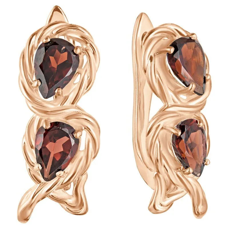 Серебряные серьги с натуральным гранатом - коллекция Ривьера. Серебряные серьги 925 пробы с покрытием красное золото. Цвет покрытия соответствует швейцарскому цветовому стандарту NIHS -5N и цвету красного золота 585 в России. На последней фотографии мы разместили сравнительную фотографию 3 цвета золотого покрытия. Помимо предания золотого цвета Вашему изделию, тонкий слой золота защищает от окисления. Для более стойкого эффекта золочения и долговечности покрытия мы дополнительно наносим подслой палладия (Pd). Средний вес изделия с камнями 4.71 гр. Месторождение: Гранат (Кольский п-ов, Россия) Гранат (Натуральный) груша 5*7 мм., средний вес: 0.79 карат. Все изделия собственного производства. Гарантия 12 месяцев.Арт. 8158. Гранат называют камнем любви. Он дарит своим обладательницам мудрость, а владельцам – решительность и храбрость. Данному камню присущи лечебные свойства, давным-давно он использовался при ранениях. Считалось, что он помогает поддерживать связь с миром мертвых.