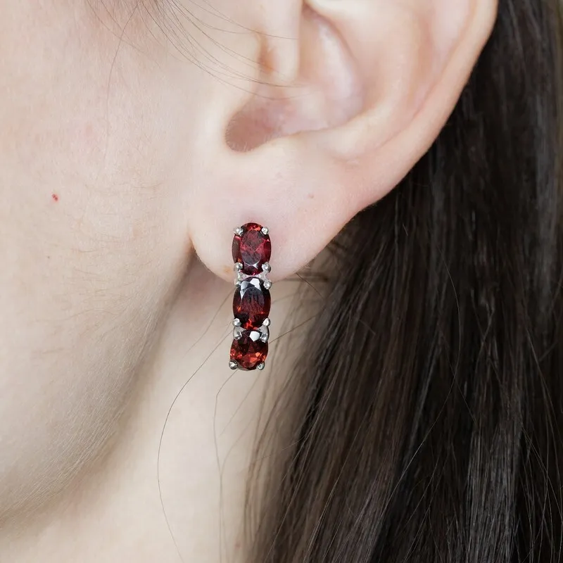 Серебряные серьги с натуральным гранатом - коллекция Муза. Средний вес изделия с камнями 4.06 гр. Месторождение: Гранат (Кольский п-ов, Россия) Гранат (Натуральный) овал 5*7 мм., средний вес: 0.95 карат. Все изделия собственного производства. Гарантия 12 месяцев.Арт. 8165. Гранат называют камнем любви. Он дарит своим обладательницам мудрость, а владельцам – решительность и храбрость. Данному камню присущи лечебные свойства, давным-давно он использовался при ранениях. Считалось, что он помогает поддерживать связь с миром мертвых.