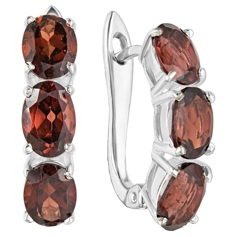 Серебряные серьги с натуральным гранатом - коллекция Муза / покрытие Белый Родий