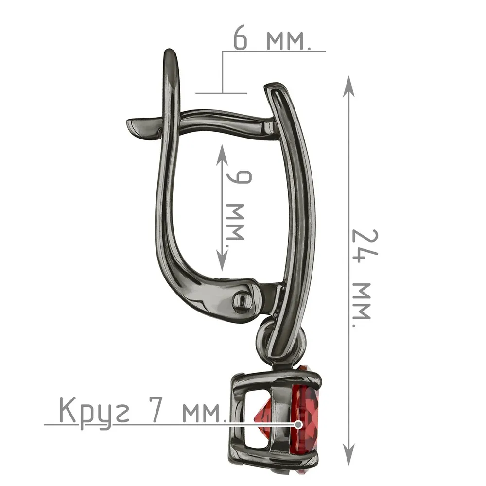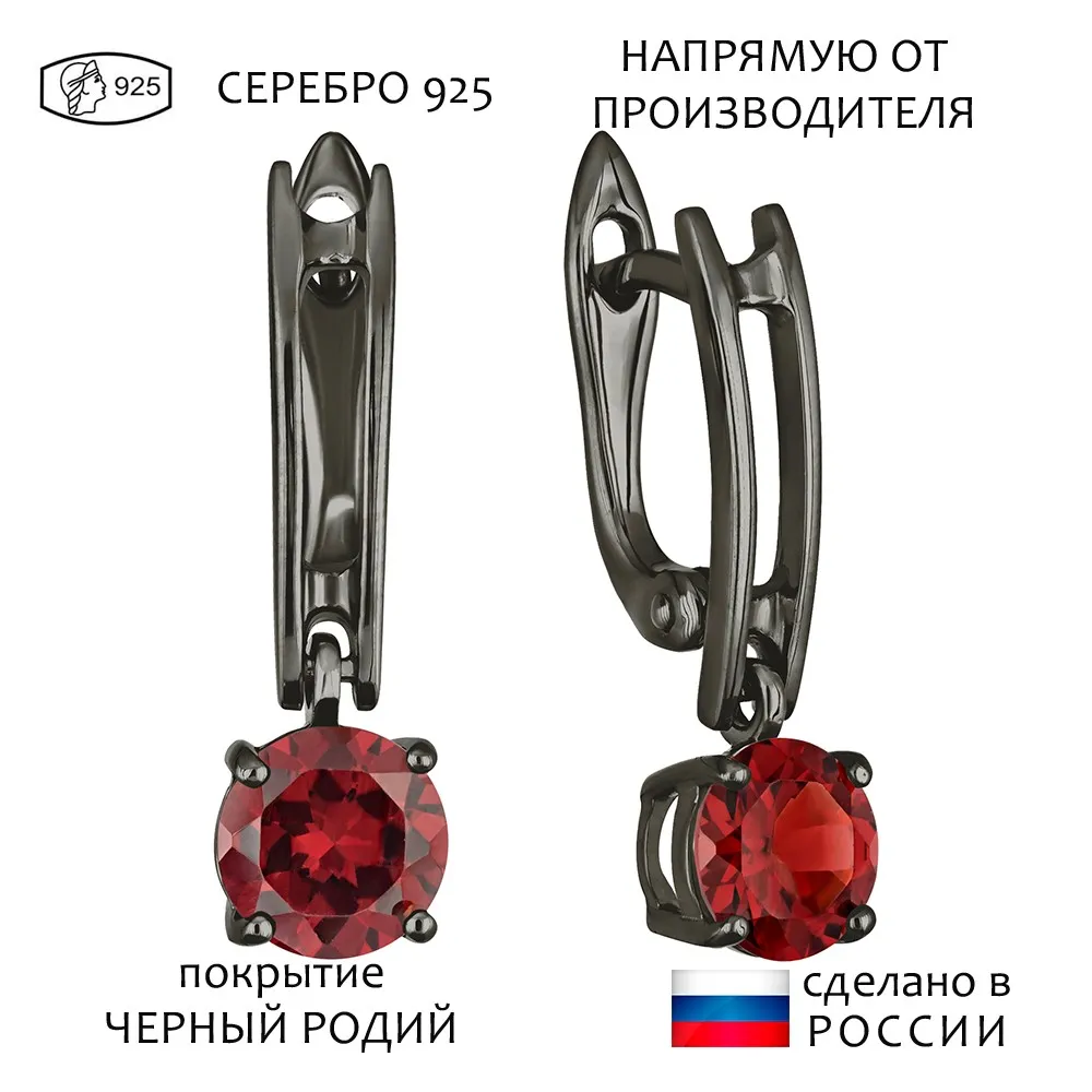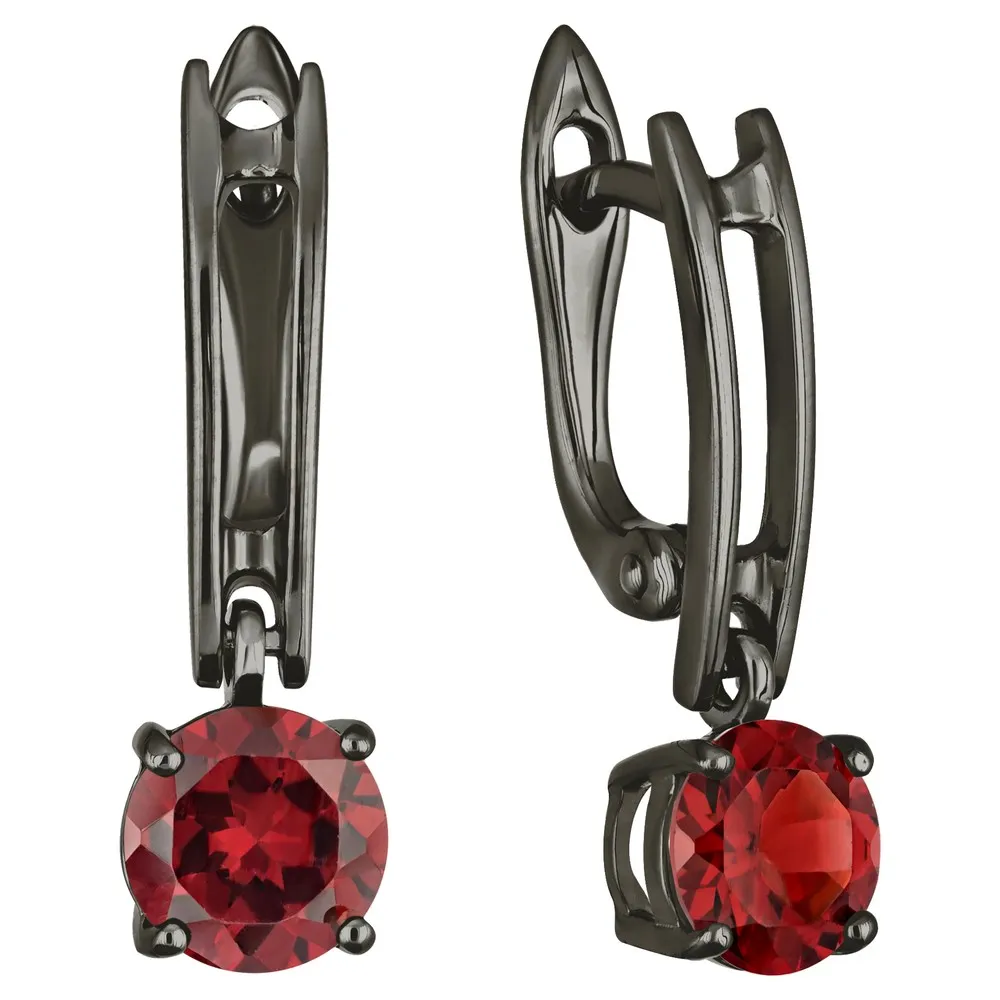 Серебряные серьги с натуральным гранатом - коллекция Классик (мини) / Черный Родий.