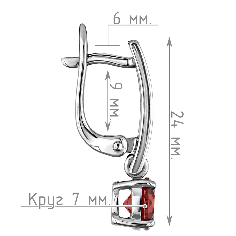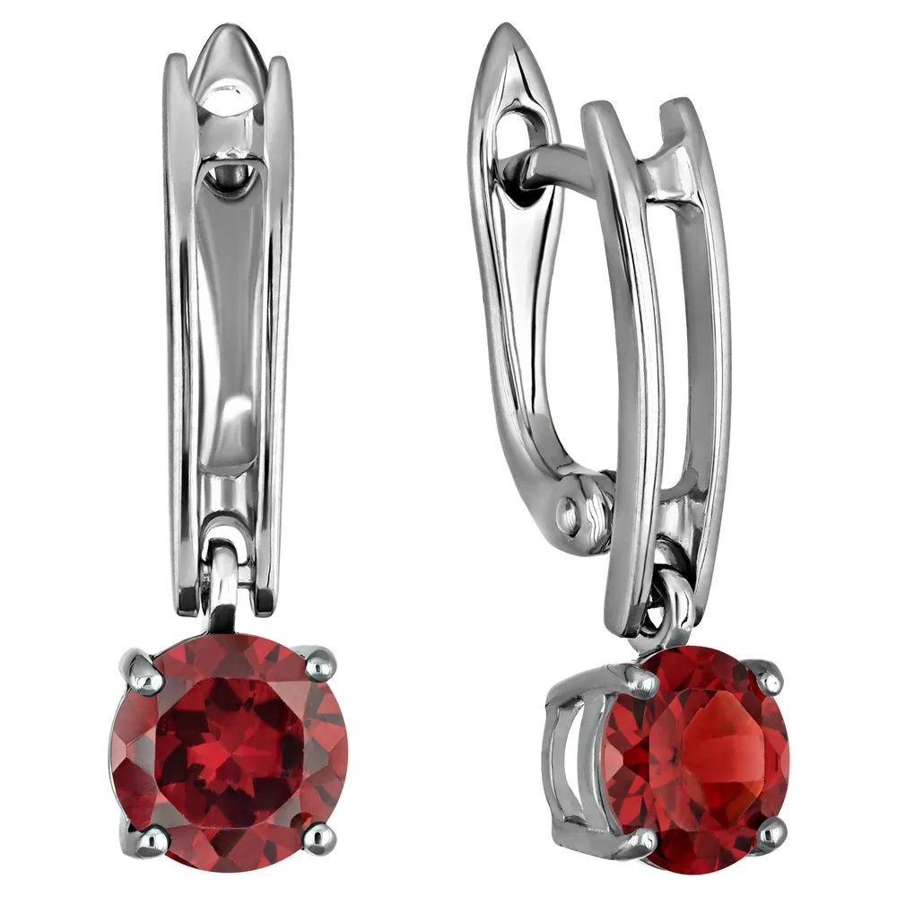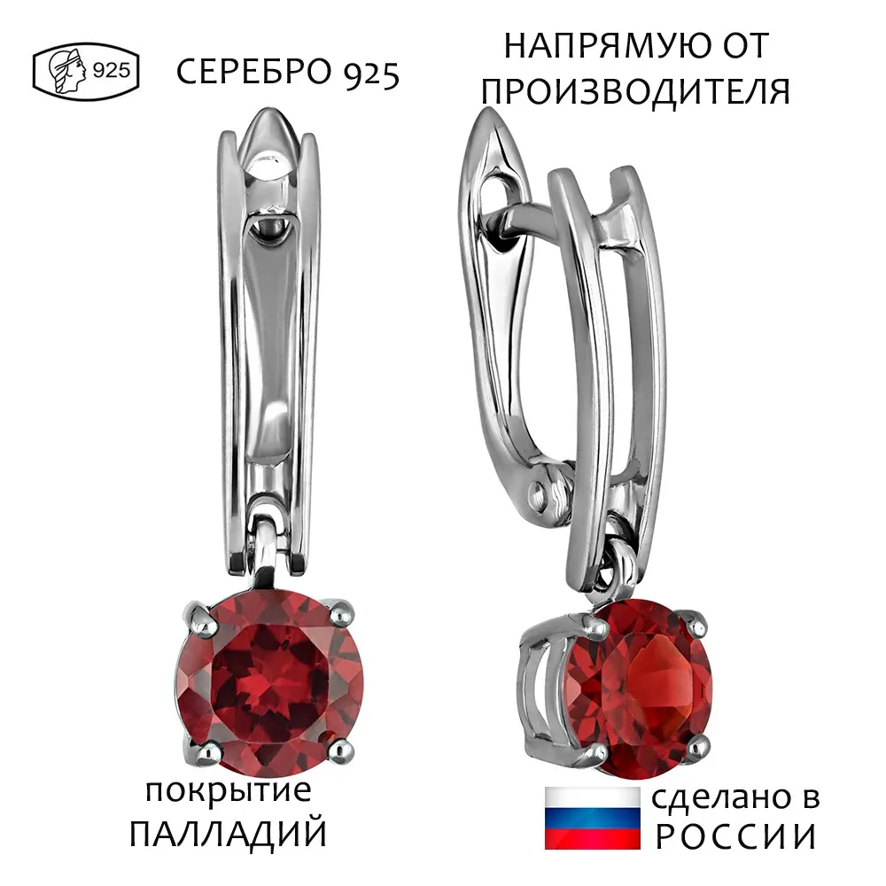 Серебряные серьги с натуральным гранатом - коллекция Классик (мини) / Палладий.