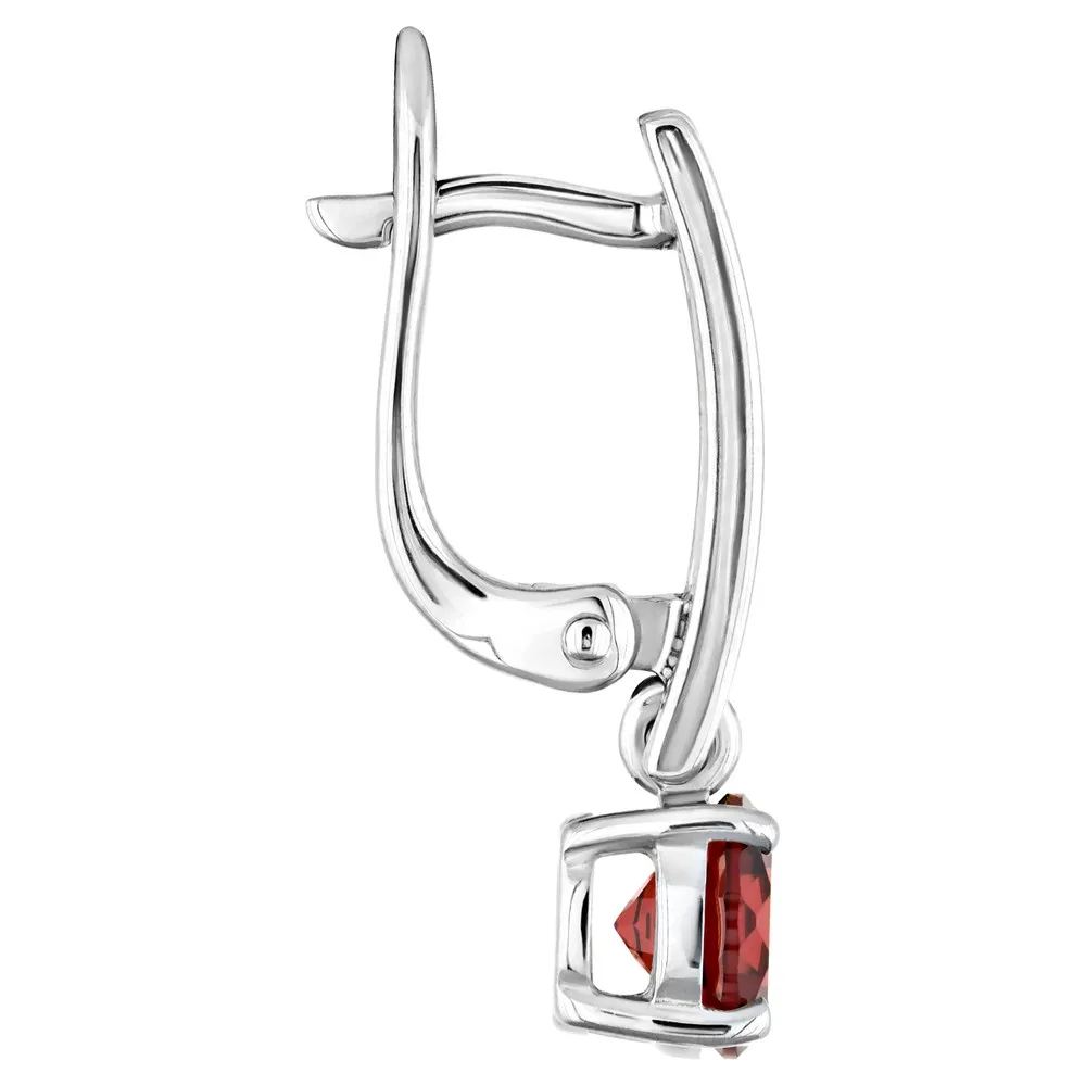Серебряные серьги с натуральным гранатом - коллекция Классик (мини) / Белый Родий.