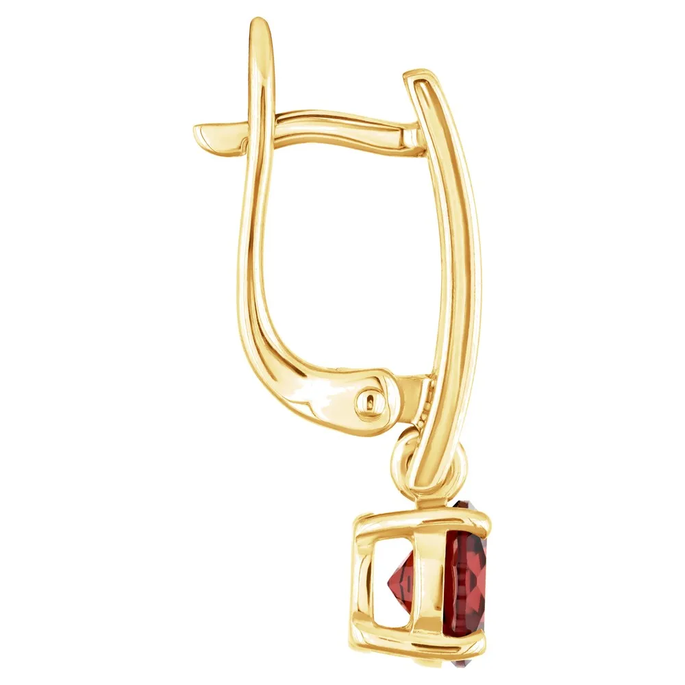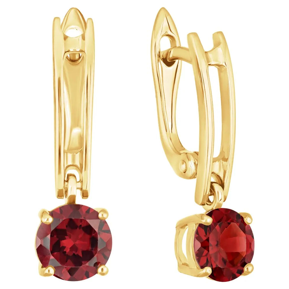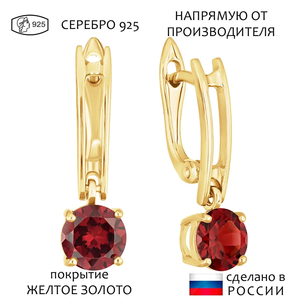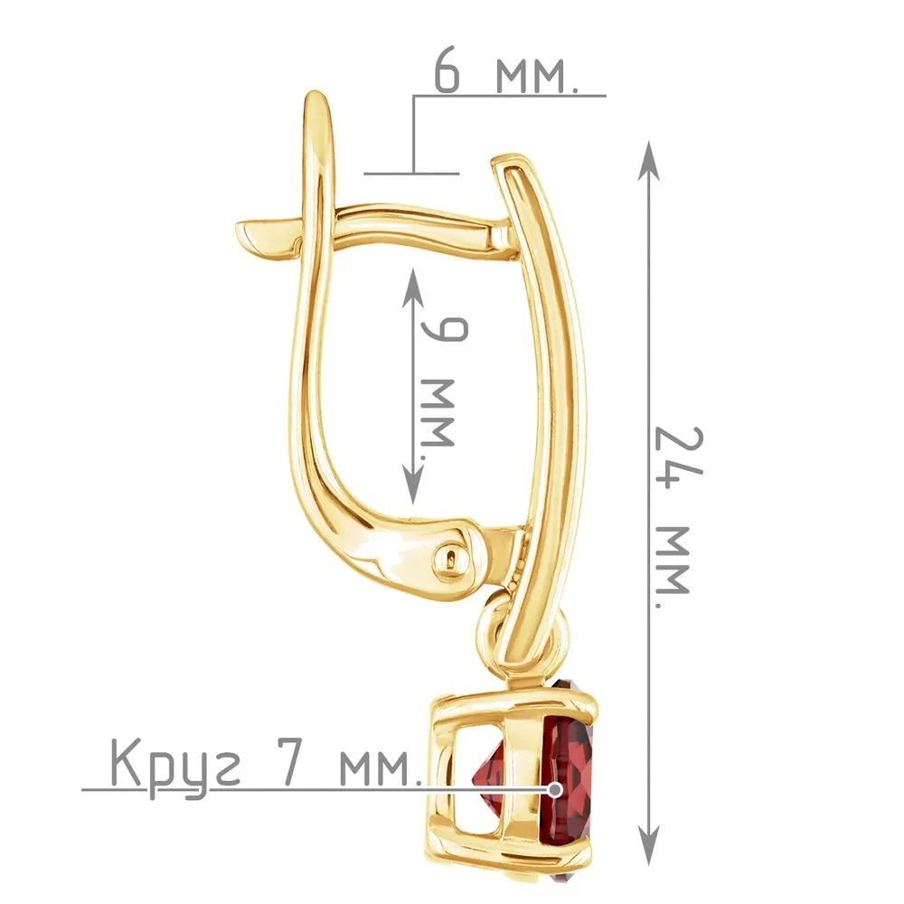 Серебряные серьги с натуральным гранатом - коллекция Классик (мини) / Желтое Золото.