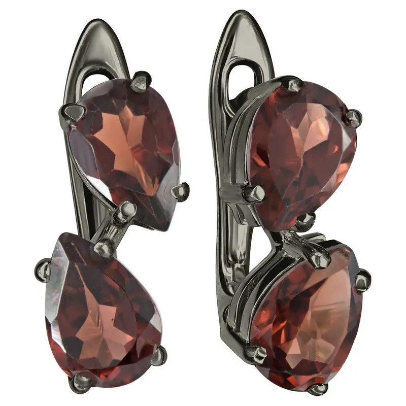 Серебряные серьги с натуральным гранатом - коллекция Дуэт / покрытие Черный Родий.Средний вес украшения с камнями 2.82 гр.Месторождение(я): Гранат (Кольский п-ов, Россия).Ювелирные вставки:Гранат (Натуральный) груша 5*7 мм., средний вес: 0.79 карат.Все изделия собственного производства и имеют гарантию 12 месяцев. Арт. 8682BR . Гранат называют камнем любви. Он дарит своим обладательницам мудрость, а владельцам – решительность и храбрость. Данному камню присущи лечебные свойства, давным-давно он использовался при ранениях. Считалось, что он помогает поддерживать связь с миром мертвых.