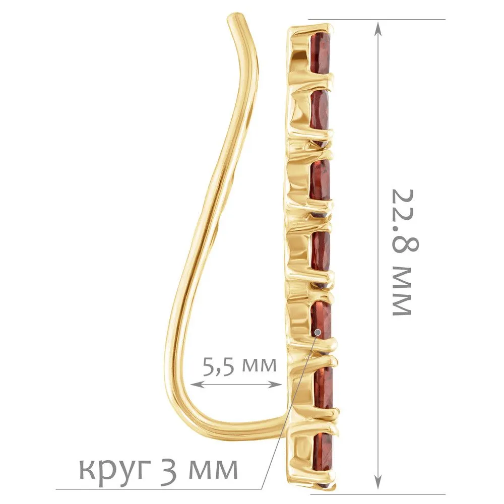 Серебряные серьги каффы с натуральным гранатом - коллекция Волна / покрытие Желтое Золото.Средний вес украшения с камнями 1.74 гр.Месторождение: Гранат (Кольский п-ов, Россия)Ювелирные вставки:Гранат (Натуральный) круг 3 мм., средний вес: 0.9 карат.Все изделия собственного производства и имеют гарантию 12 месяцев. Арт. 8751YG . Гранат называют камнем любви. Он дарит своим обладательницам мудрость, а владельцам – решительность и храбрость. Данному камню присущи лечебные свойства, давным-давно он использовался при ранениях. Считалось, что он помогает поддерживать связь с миром мертвых.