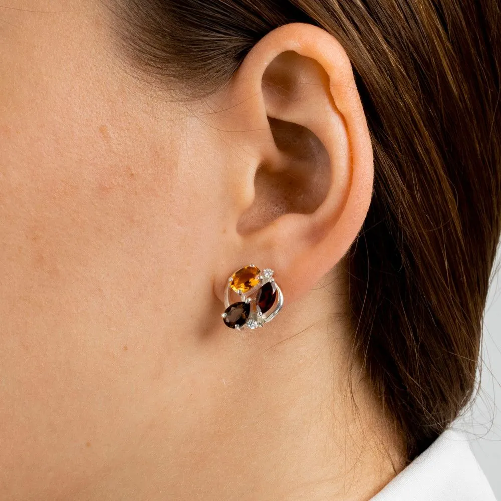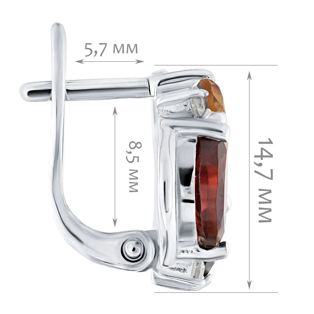 Серебряные серьги Фортуна с натуральными камнями цитрин, раухтопаз и гранат, покрытие Чистое Серебро. Средний вес украшения с камнями 5,64 гр. Месторождение(я) камней: Цитрин (Урал, Россия), Раухтопаз (Дымчатый кварц) (м-ние Додо ХМАО, Россия), Гранат (Кольский п-ов, Россия). Гранат (Натуральный) маркиз: 4*8 мм., средний вес 0,75 карат. Цитрин (Натуральный) овал: 5*7 мм., средний вес 0,80 карат. Раухтопаз (Натуральный) груша: 5*7 мм., средний вес 0,70 карат. Циркон белый (Натуральный) круг: 2 мм., средний вес 0,05 карат. Размер лицевой части: 13*14 мм. Все изделия собственного производства и имеют гарантию 12 месяцев. Арт. 6680AG . Цитрин – камень, который активно использовался для инкрустации. С его помощью излечивали заболевания желудочно-кишечного тракта, он становился амулетом, приносящим удачу. Золотисто-жёлтый камень известен и любим очень давно за ряд своих положительных качеств.