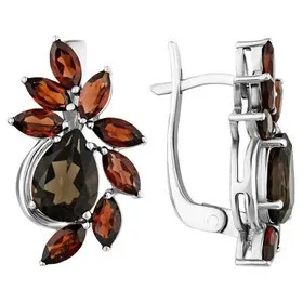Современные серебряные серьги "Элегия", с натуральными камнями раухтопаз (дымчатый кварц) и гранат, без покрытия. Средний вес украшения с камнями: 7,21 гр. Натуральные камни: Раухтопаз (Дымчатый кварц)(м-ние Додо ХМАО, Россия), Гранат (Кольский п-ов, Россия). Раухтопаз (Натуральный) груша: 7*10 мм., средний вес 1,85 карат. Гранат (Натуральный) маркиз: 3*6 мм. средний вес 0,35 карат. Размер лицевой части: 15*24 мм. Все изделия собственного производства и имеют гарантию 12 месяцев, к каждому изделию прилагается паспорт. Арт. 6255NP
