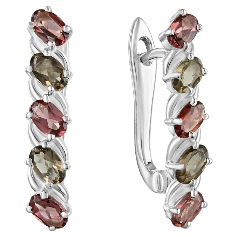 Серебряные серьги с натуральными камнями гранат и раухтопаз - коллекция Колосок. Средний вес изделия с камнями 4.2 гр. Месторождения: Гранат (Кольский п-ов, Россия) и Раухтопаз (Дымчатый кварц)(м-ие Додо ХМАО, Россия) Гранат (Натуральный) овал 3*5 мм., средний вес: 0.34 карат. Раухтопаз (Натуральный) овал 3*5 мм., средний вес: 0.32 карат. Все изделия собственного производства. Гарантия 12 месяцев.Арт. 8025. Гранат называют камнем любви. Он дарит своим обладательницам мудрость, а владельцам – решительность и храбрость. Данному камню присущи лечебные свойства, давным-давно он использовался при ранениях. Считалось, что он помогает поддерживать связь с миром мертвых.