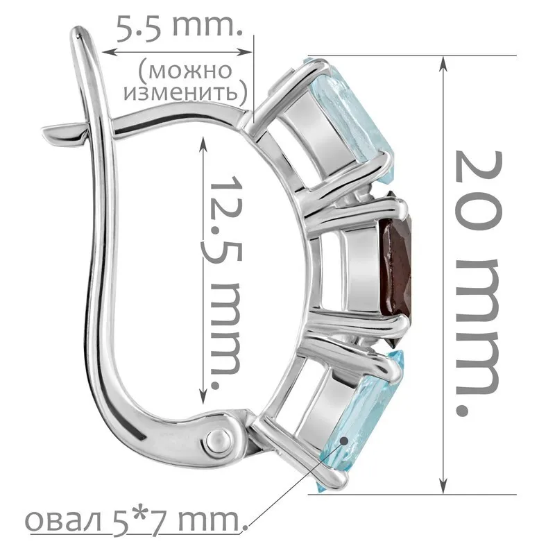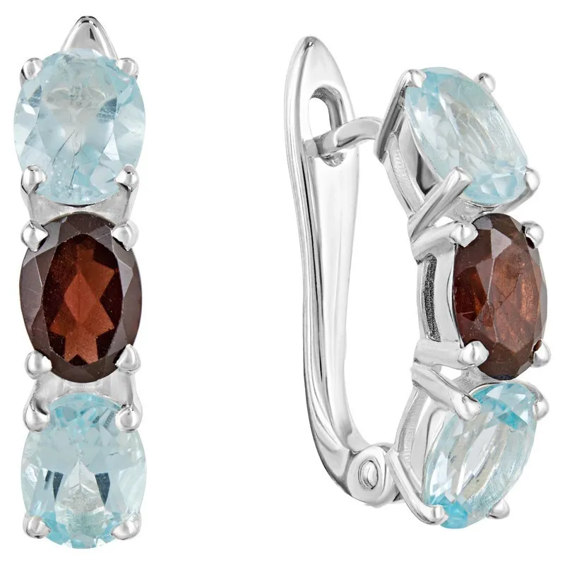 Серебряные серьги с натуральными камнями гранат и голубой топаз - коллекция Муза / Без покрытия